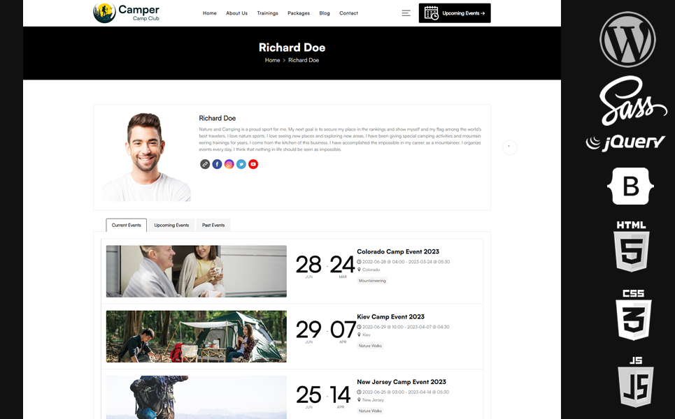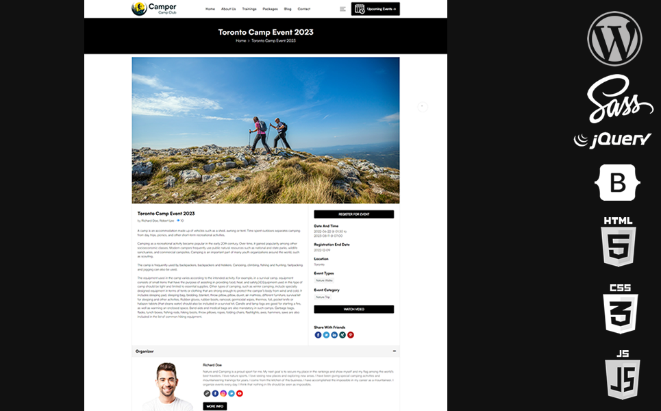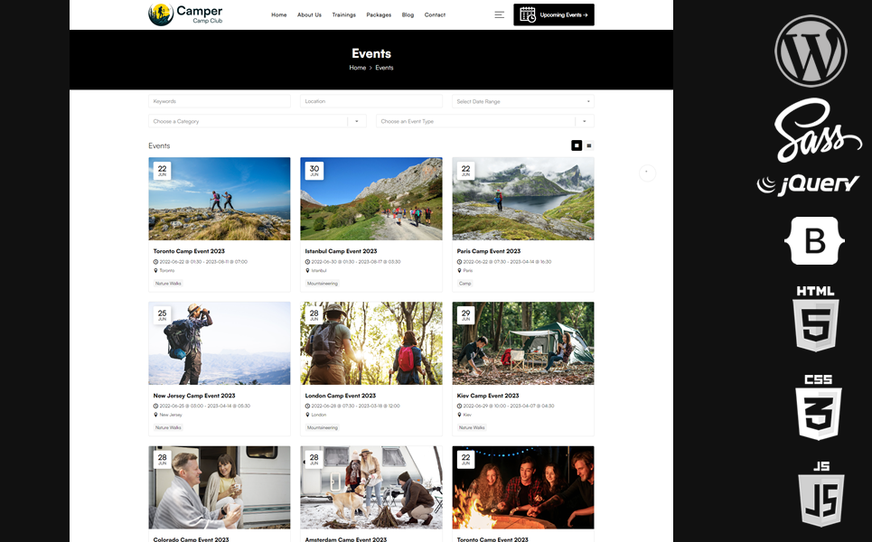 With this WordPress theme we developed for mountaineering training, nature walks and camping training and events, you will appeal to large audiences.