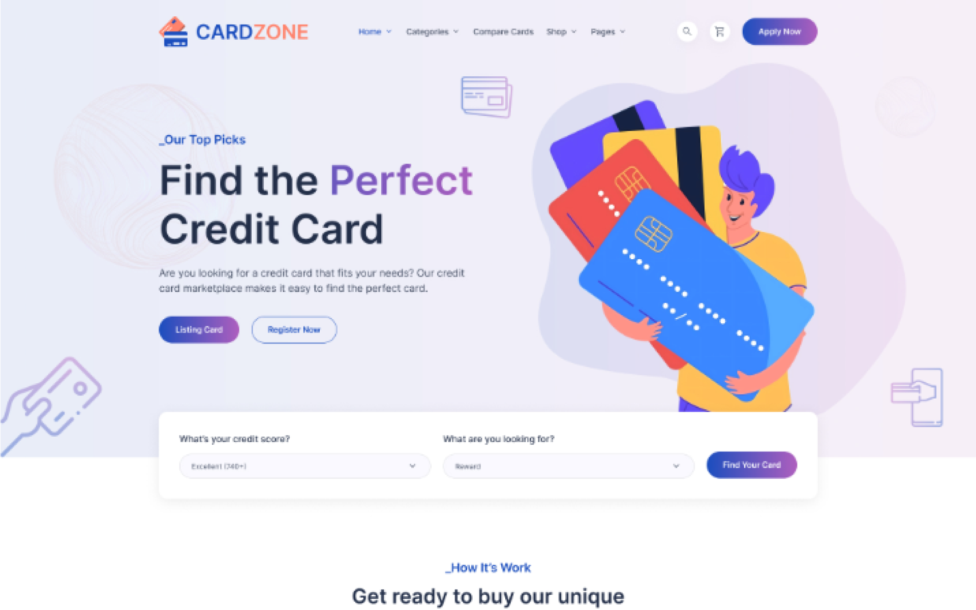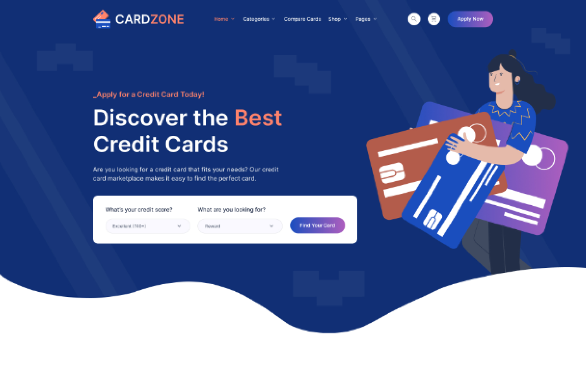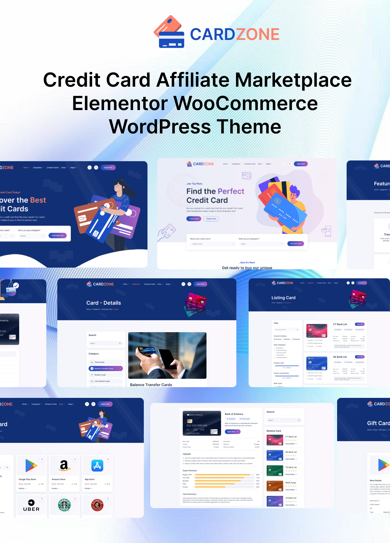 CardZone - Credit Card Affiliate Marketplace Elementor WooCommerce WordPress Theme