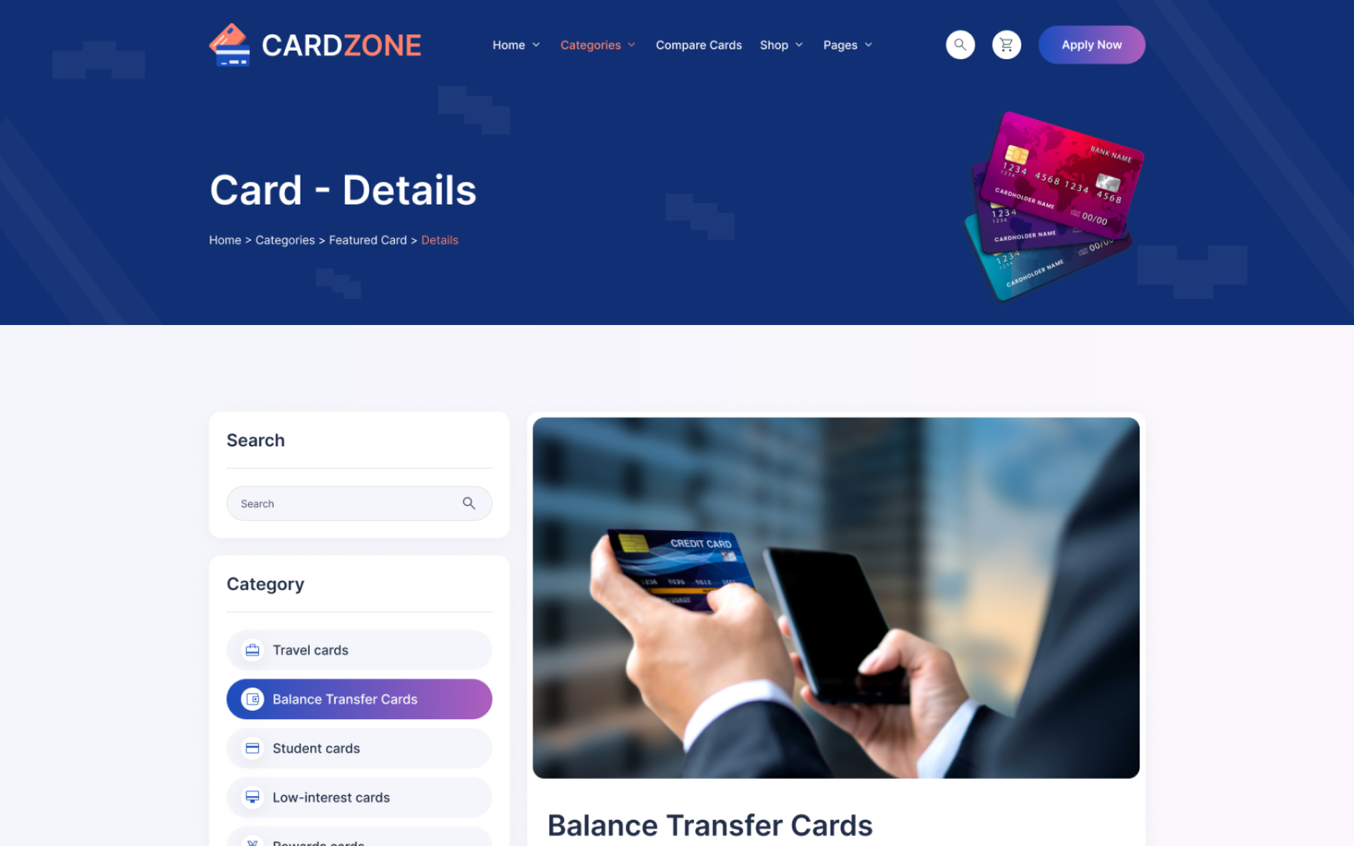 CardZone is more than just a theme – it’s your complete solution for launching a professional credit card marketplace with affiliate features. Whether you're a finance blogger, digital marketer, or startup founder in the fintech space, CardZone provides the design, structure, and tools to succeed online.