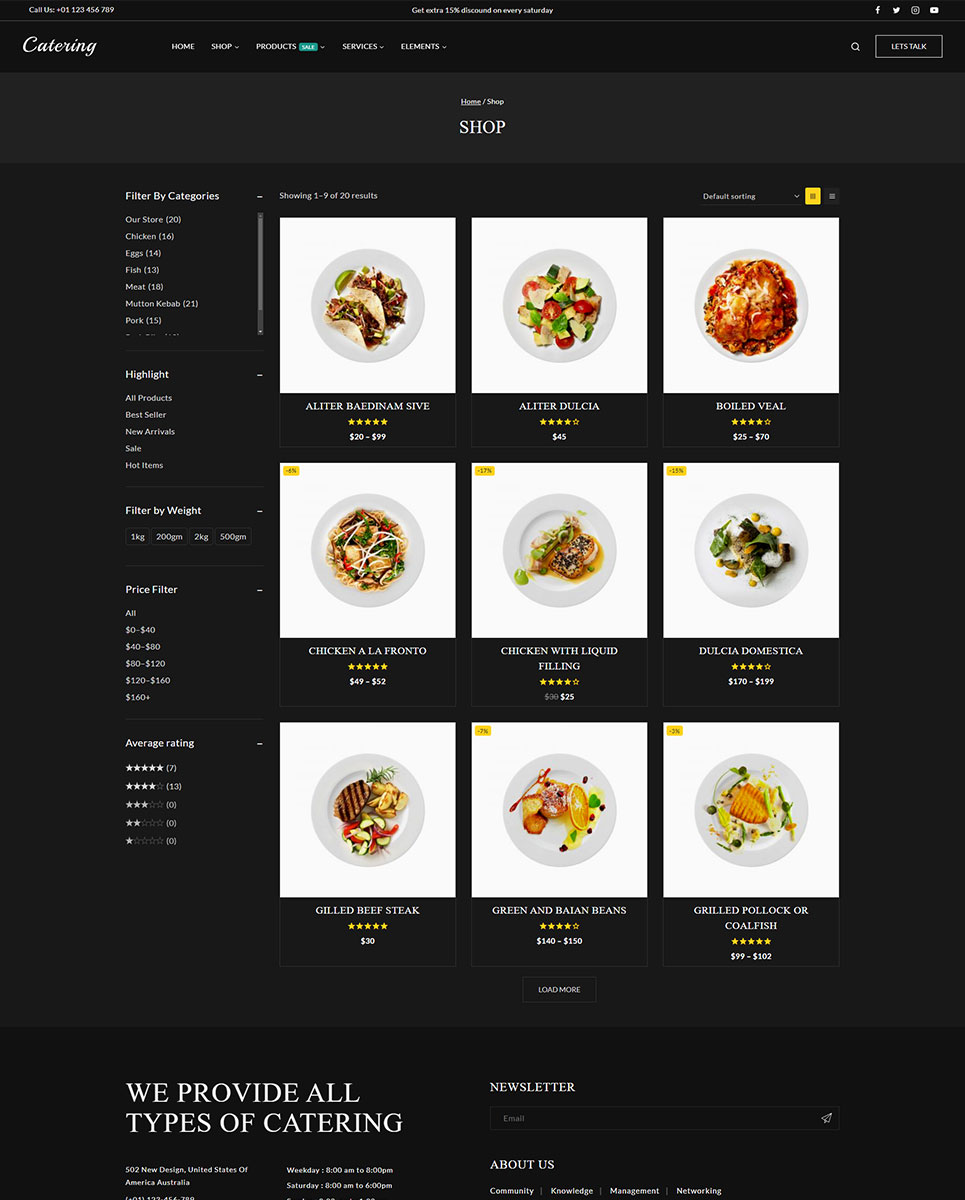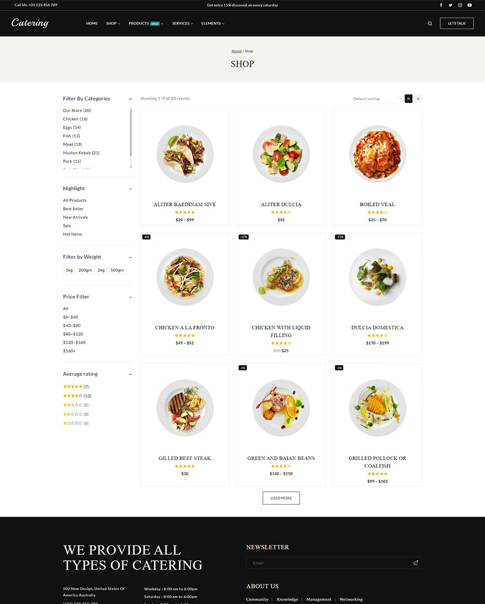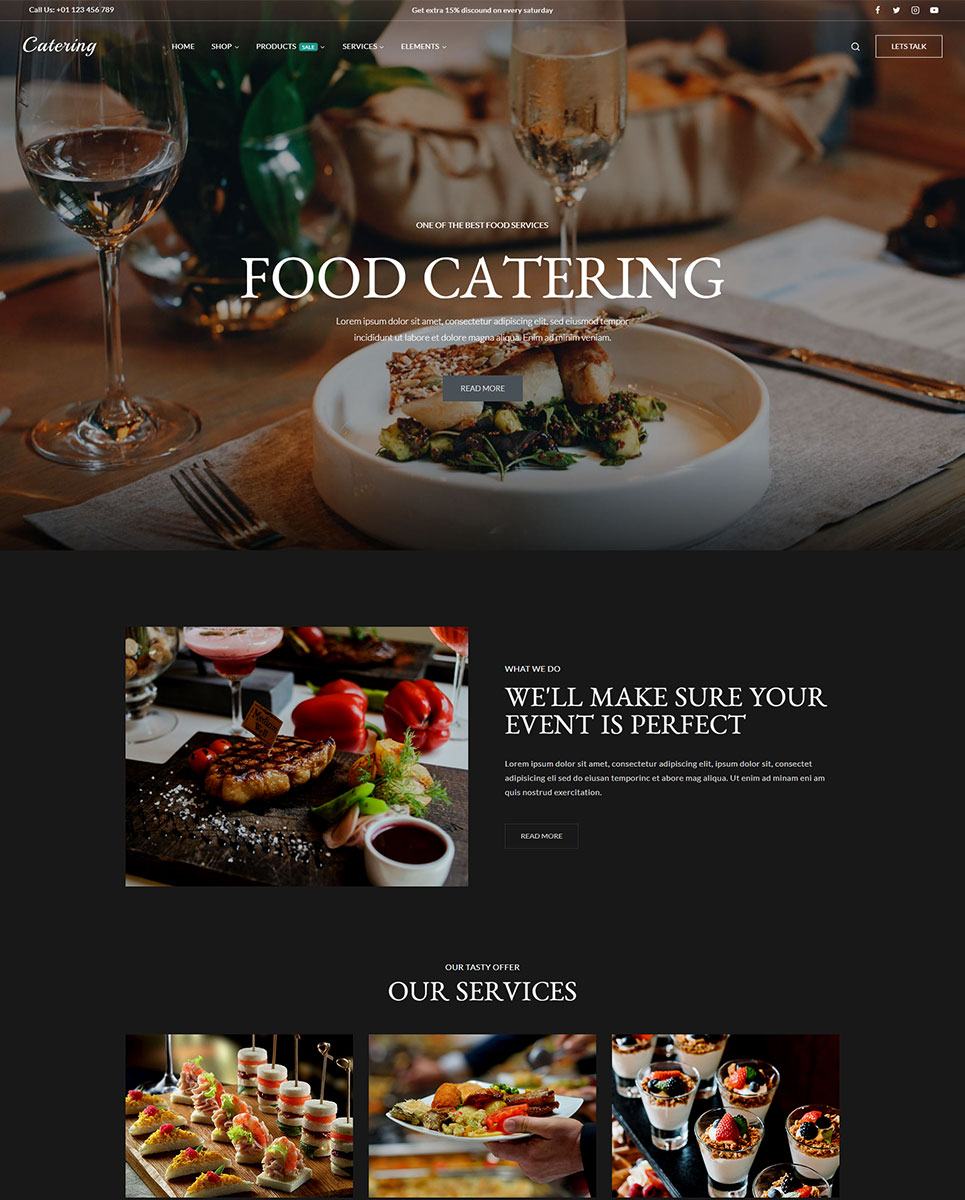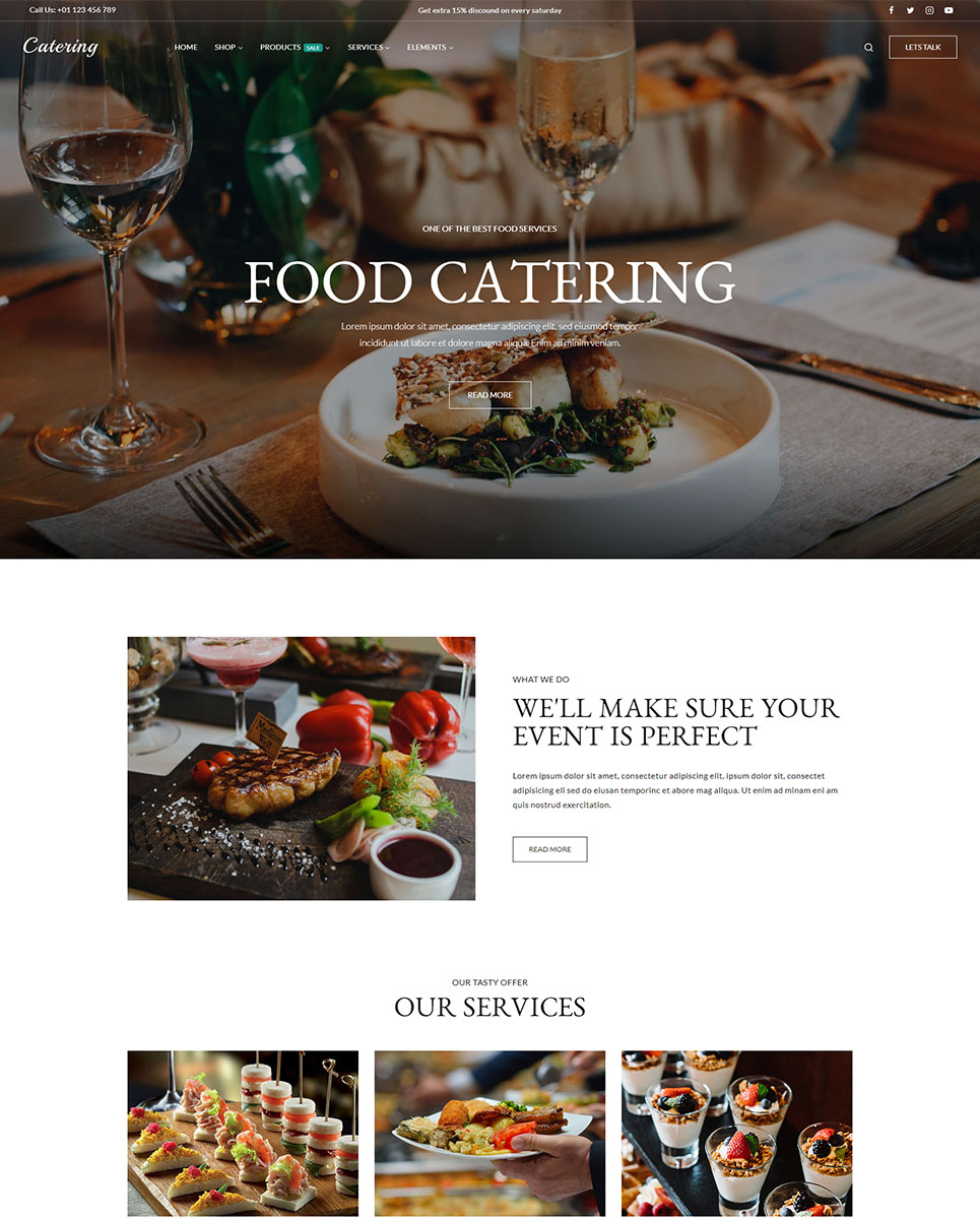 It is meant as a website for professional event planning or catering businesses. Additionally, it is ideal for wedding planners, corporate event coordinators, restaurant rentals, party decorating companies, and planners of special occasions and moments like birthdays, anniversaries, engagement parties, private party planning firms, as well as any other events. If you're a chef and would want to provide your skills at banquets for business gatherings, marriages, anniversaries, birthdays, and other special occasions. A café, restaurant, or pretty much any other kind of food institution would benefit from the design.