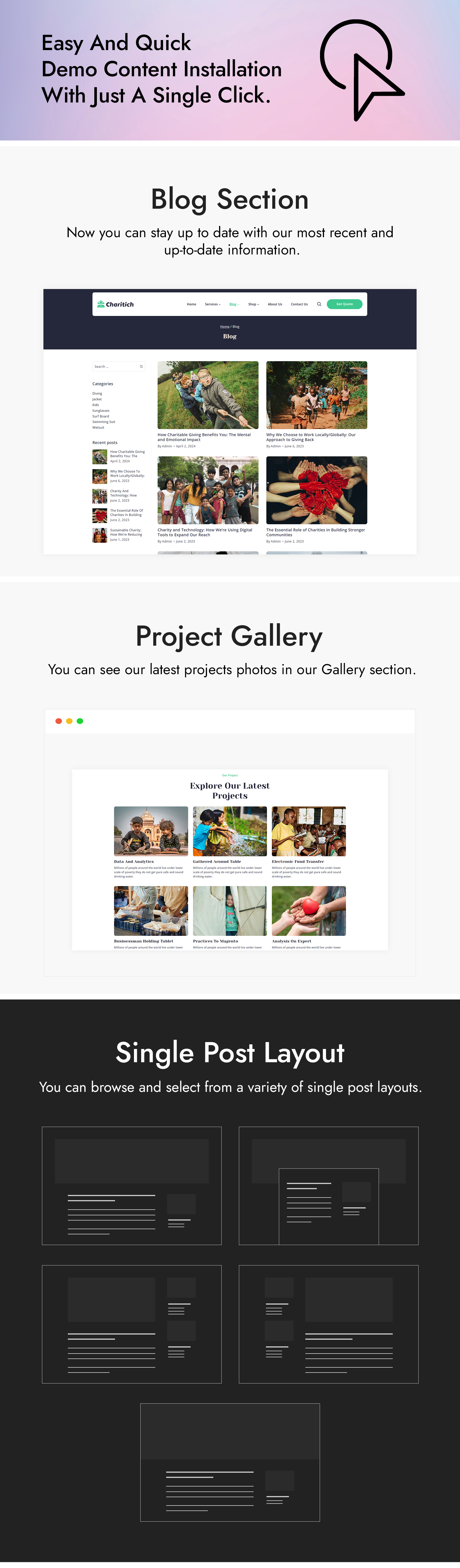 Charitich Theme is an independent nonprofit that raises money. The WordPress theme is an impressive and motivational theme made for charitable organizations charities, and fundraising campaigns. Its simple, flexible, and innovative layout makes it simpler for groups to share interesting tales, provide money, and promote awareness. Charitich Theme improves exposure and user engagement with its SEO optimization and quick loading times. While secure payment methods provide seamless online donations, social media integration aids in raising awareness. Charitich Theme is the ideal theme to encourage generosity and generate significant donations, regardless of whether you're managing a crowdfunding campaign, charity, or social cause.