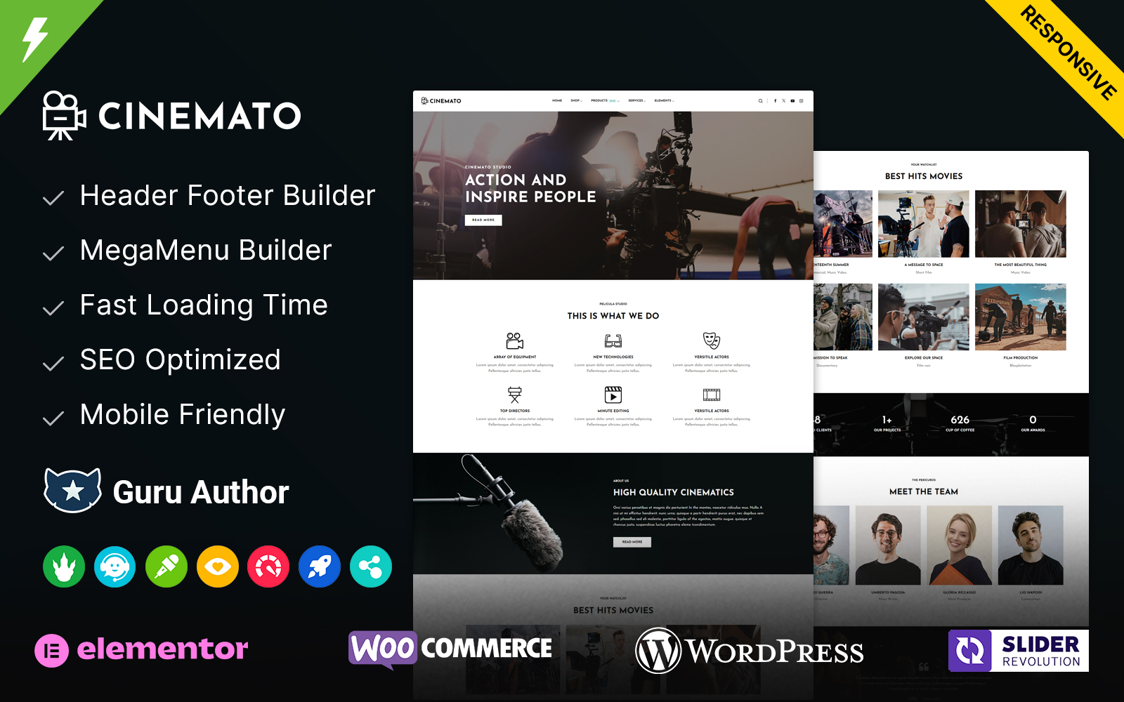 Whether you're launching a feature film or building a personal director portfolio, Cinemato adapts to your creative needs. The theme helps you create a compelling digital experience that communicates your vision, builds anticipation, and engages fans, partners, and clients alike.