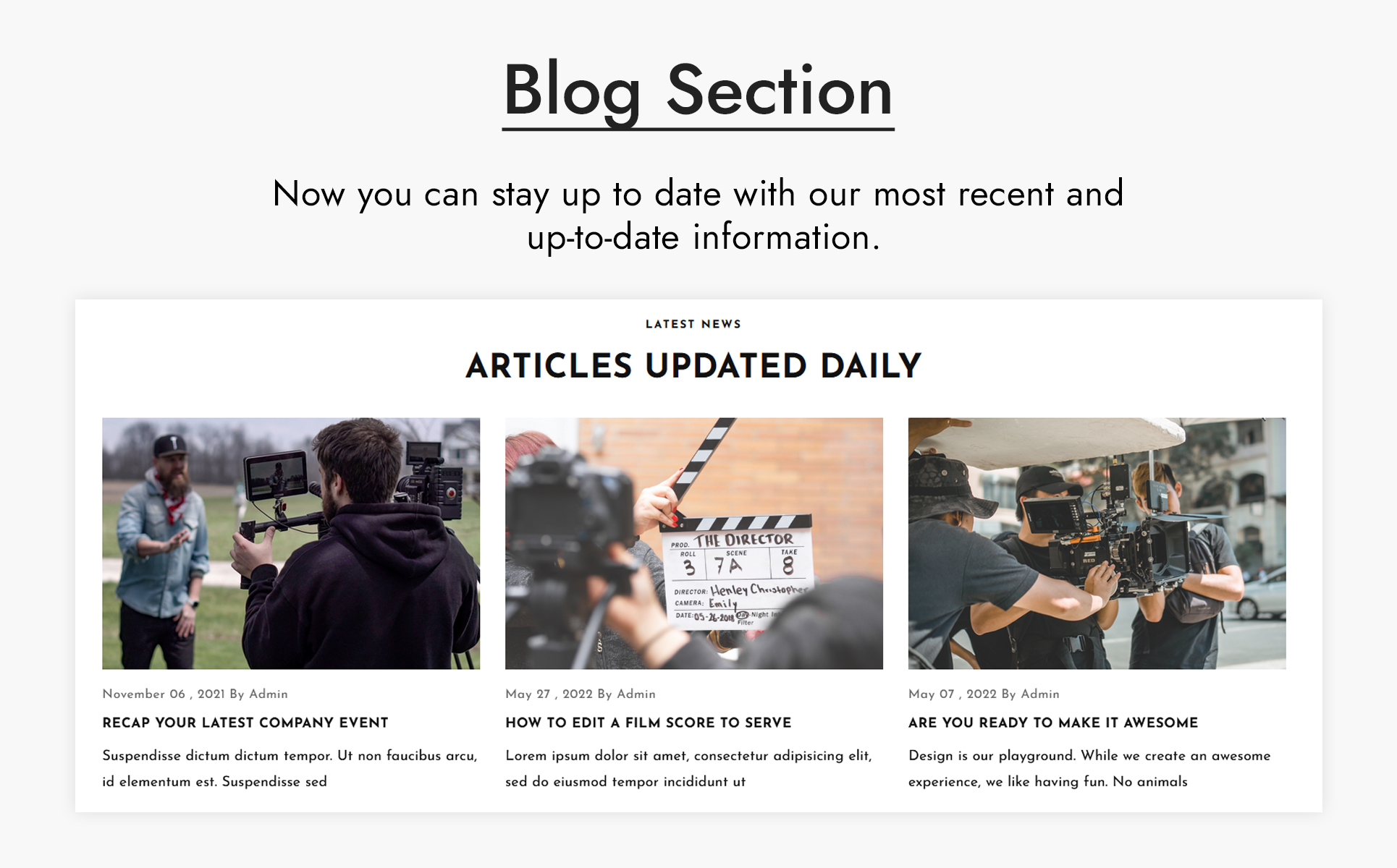 - Cast & Crew Pages – Highlight the team behind the magic with bios, photos, and social media links