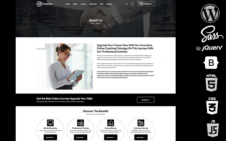 You will be able to provide online coaching training with this creative wordpress template that we have prepared for people and institutions that provide coaching training. You will have the unique online coaching training courses woocommerce wordpress theme where you can bring together the trainers and students.