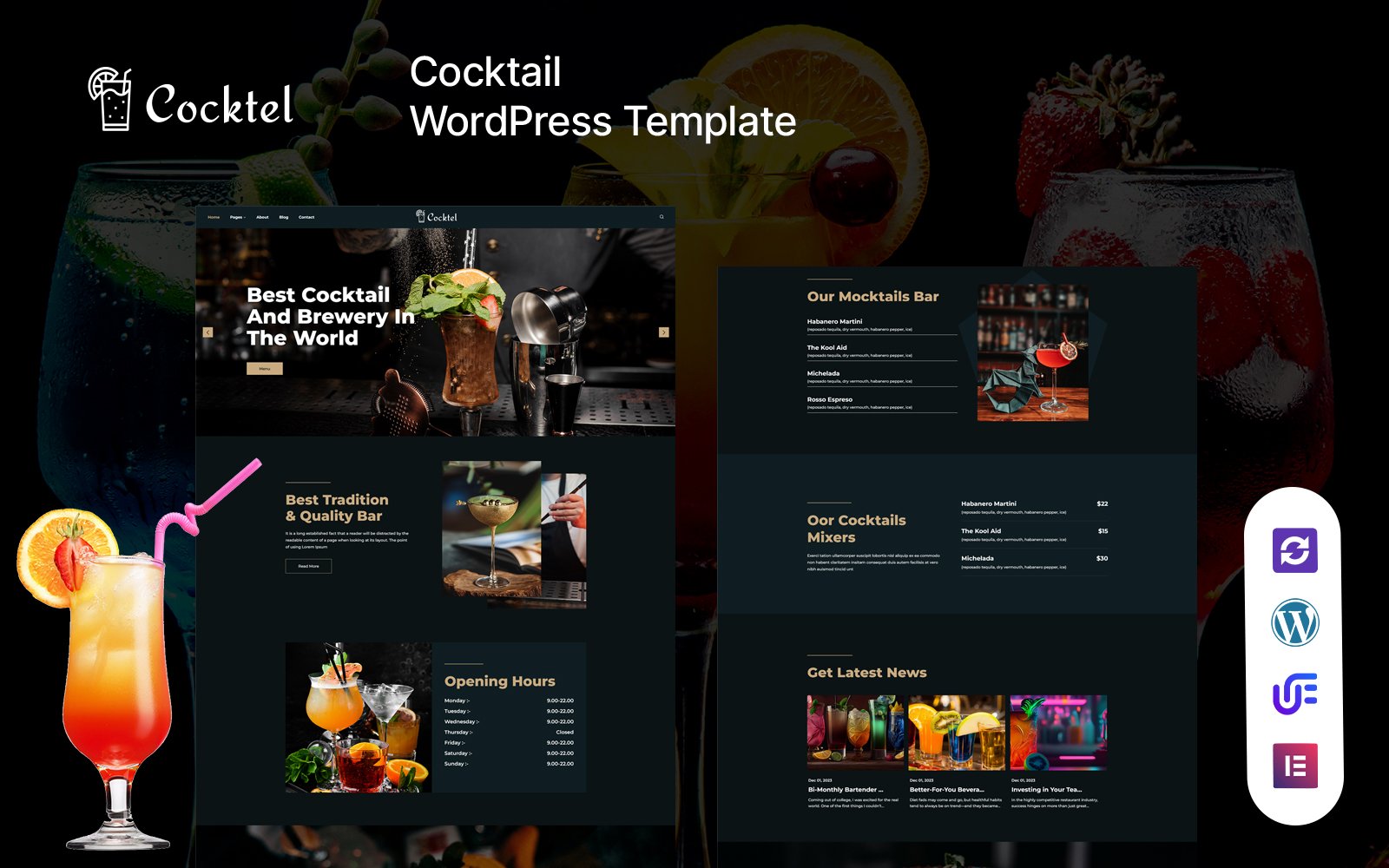 Cocktel - Cocktail Bar And Restaurant WordPress Elementor Theme WordPress Theme
