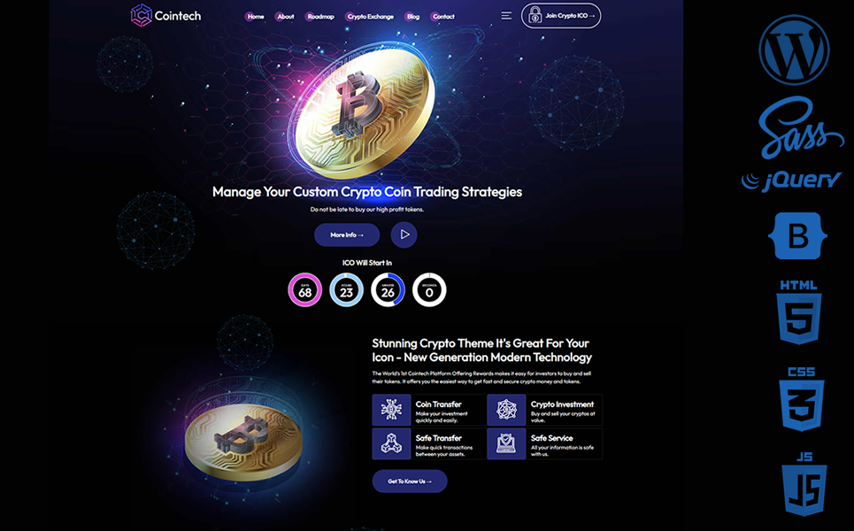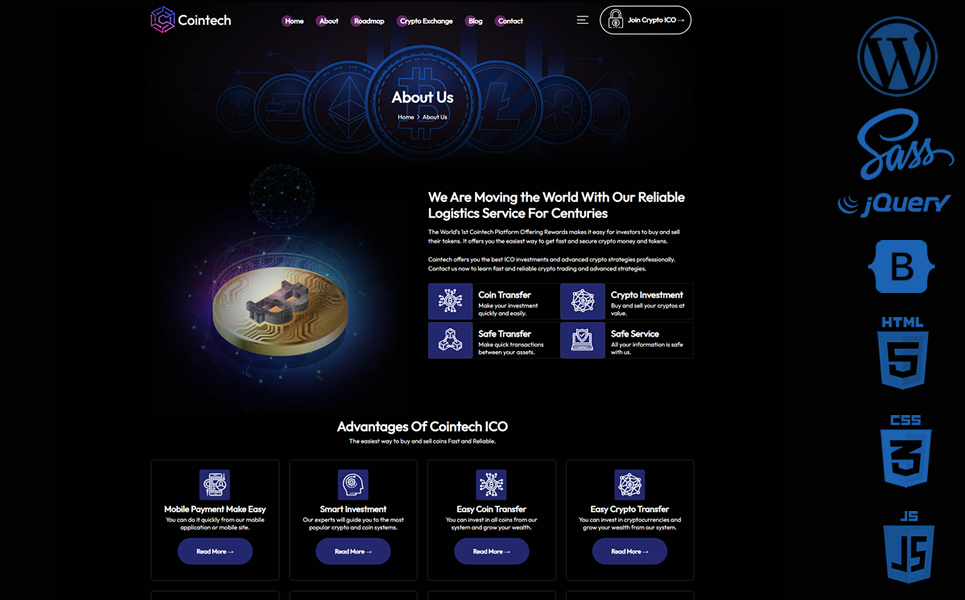 Cointech WordPress Theme is designed for Coin, ICO, Crypto, Metaverse, NFT, Bitcoin, Cryptocurrency and All Digital Systems.
