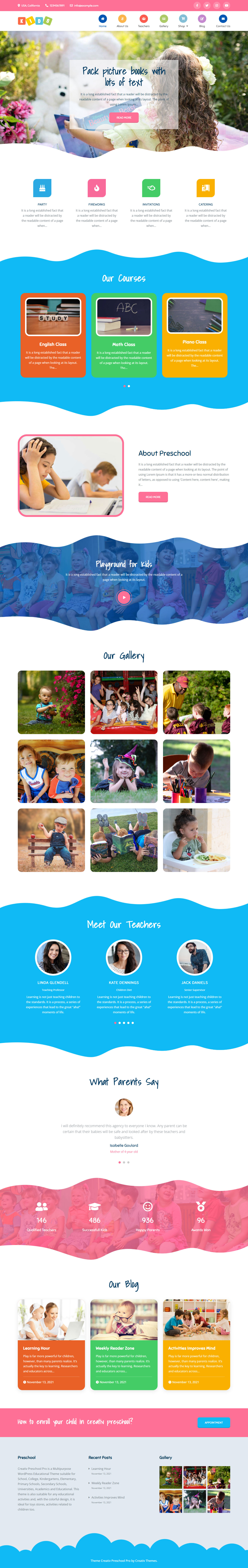Creativ Preschool Pro is a clean and modern WordPress theme built for preschool and kindergarten websites. This theme is fully responsive and compatible with cross browsers. This theme will make your school website look awesome. This theme has lots of customization features and 11 sections which will make your website beautiful.