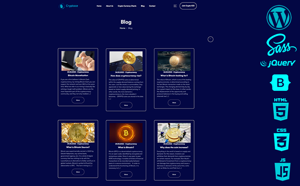 Cryptoce is custom wordpress theme made for anyone interested in Cryptocurrency, Bitcoin, Tokens, Crypto ICO and Cyrpto.