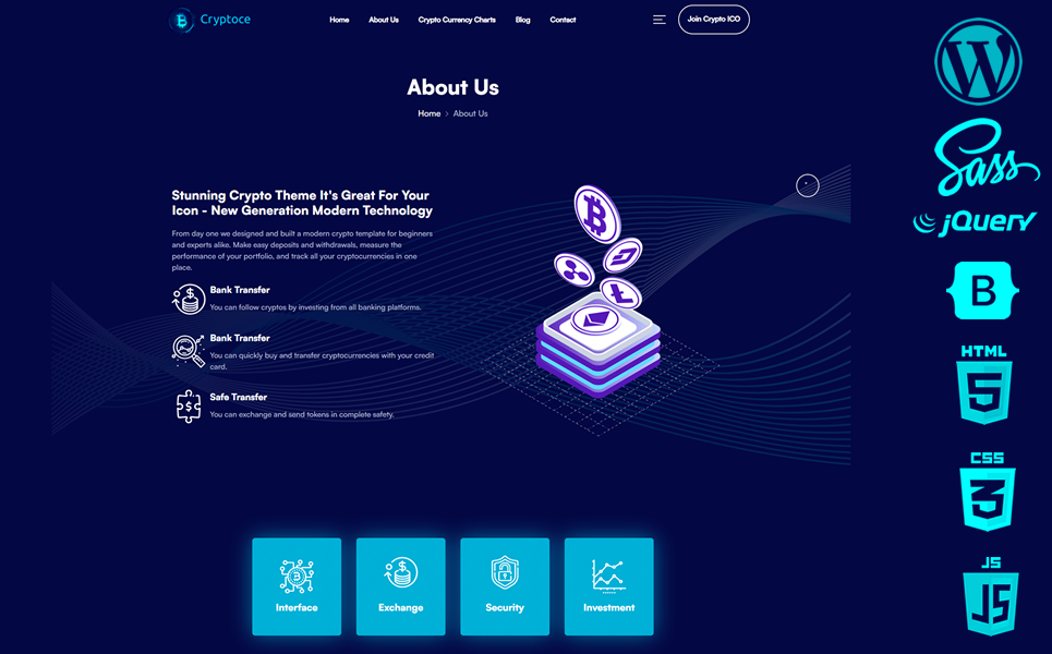 Cryptoce WordPress Theme Features;