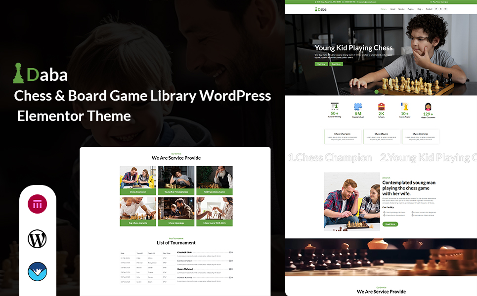 Daba - Chess & Board Game Library WordPress Elementor Theme WordPress Theme