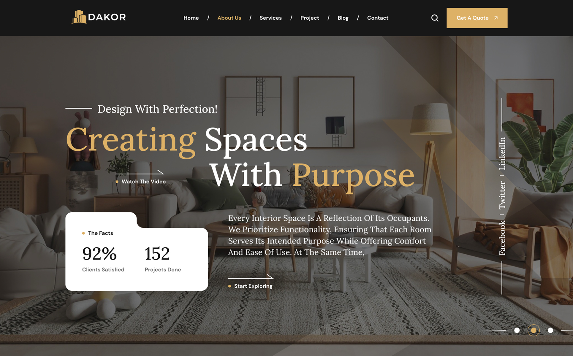 Dakor is the ultimate theme for professionals seeking to make a bold and lasting impression in the architecture and design world.