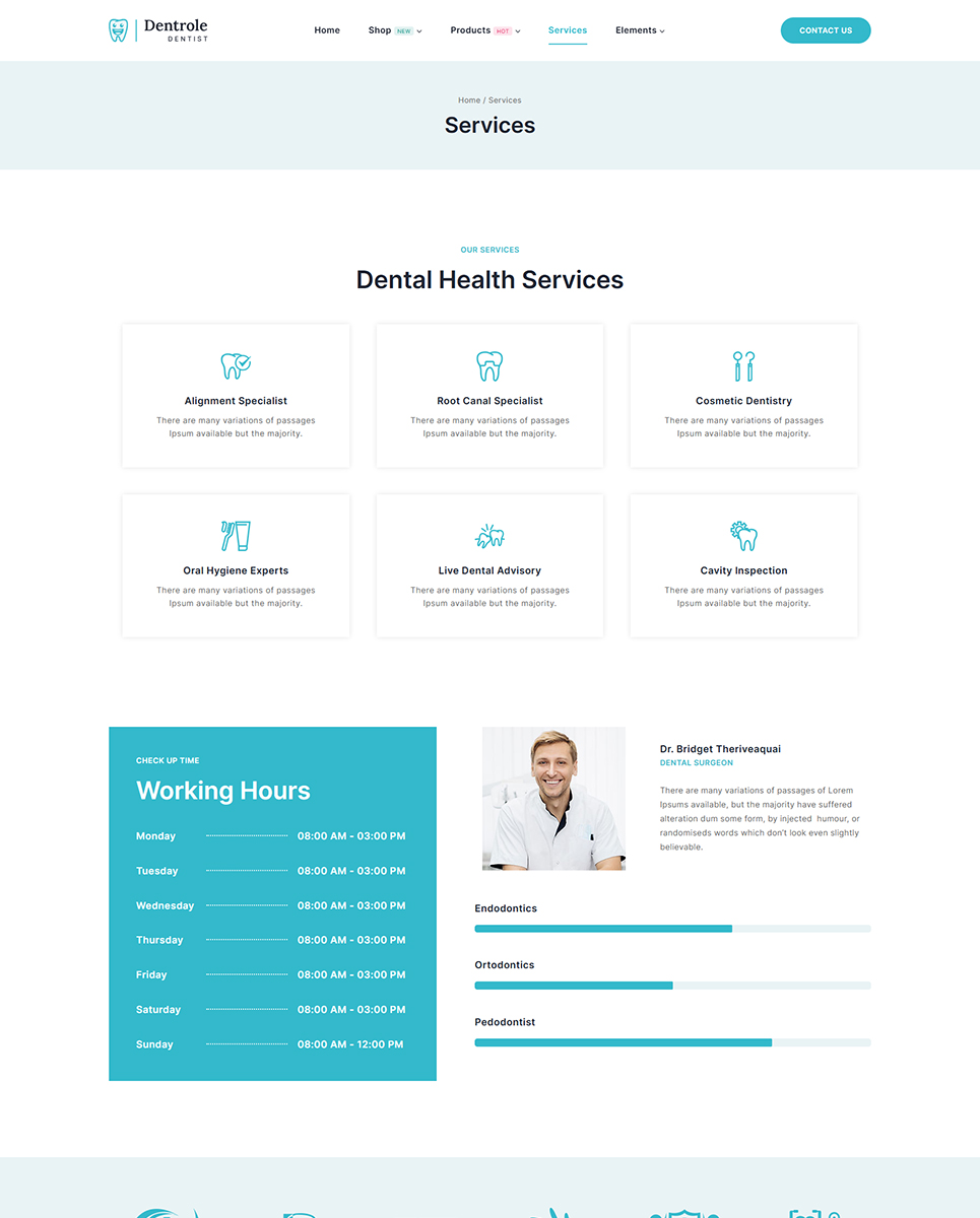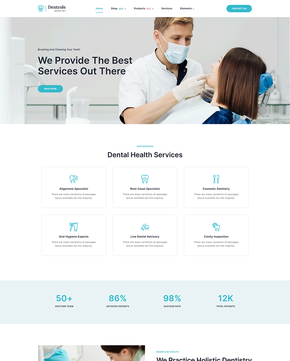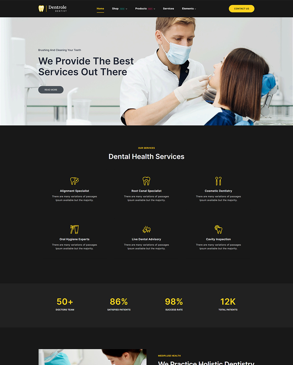 Dentrole is a WordPress theme built on the Elementor framework that was intended specifically for dentists, dental practices, dental clinics, and medical websites. The theme is fully responsive and will load on any device with any range of screen resolutions. The home page itself has unique pages prepared with this theme for dental services, about us, contact us, and many others.