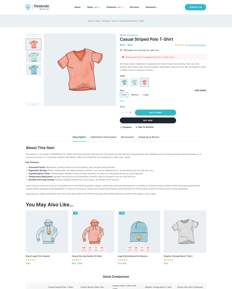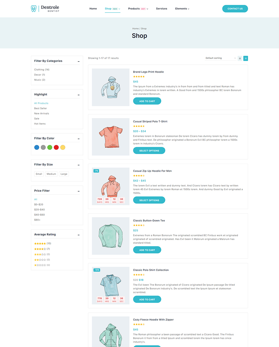 Building your website pages using Dentrole is quite easy, and anyone can design pages with various sections using just drag and drop. With the visual builder, adding and removing header and footer elements is also simple. This theme's one-click demo import functionality allows you to install the theme with sample data and modify the demo's content to match your website's and pictures to make your store ready in few minutes.