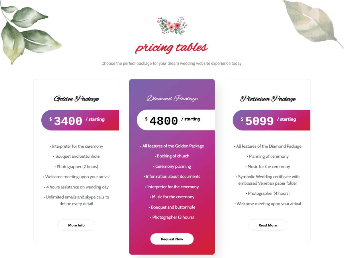 DesignPlaza is becoming the best WordPress wedding template from weddings to stunning pages dedicated to love. A must-have solution for couples, wedding planners, and event coordinators, this fully responsive and versatile theme allows you to design a captivating website that reflects the enchantment of your unique day while boasting intuitive and effortless usability.