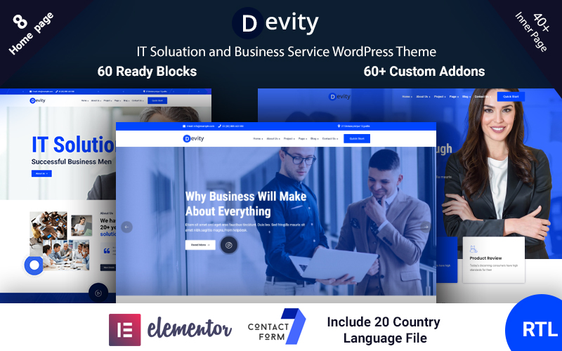 Devity IT Solutions Business Service WordPress Theme for IT services and solution company and Fully RTL Support, Digital Agency, Startup, software website, Consultancy, Finance. (It can also be used with a general corporate website as well.)