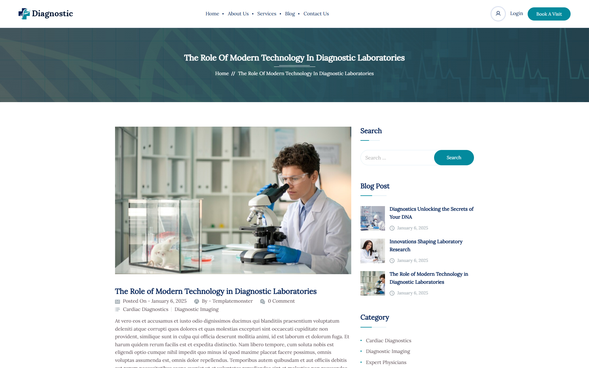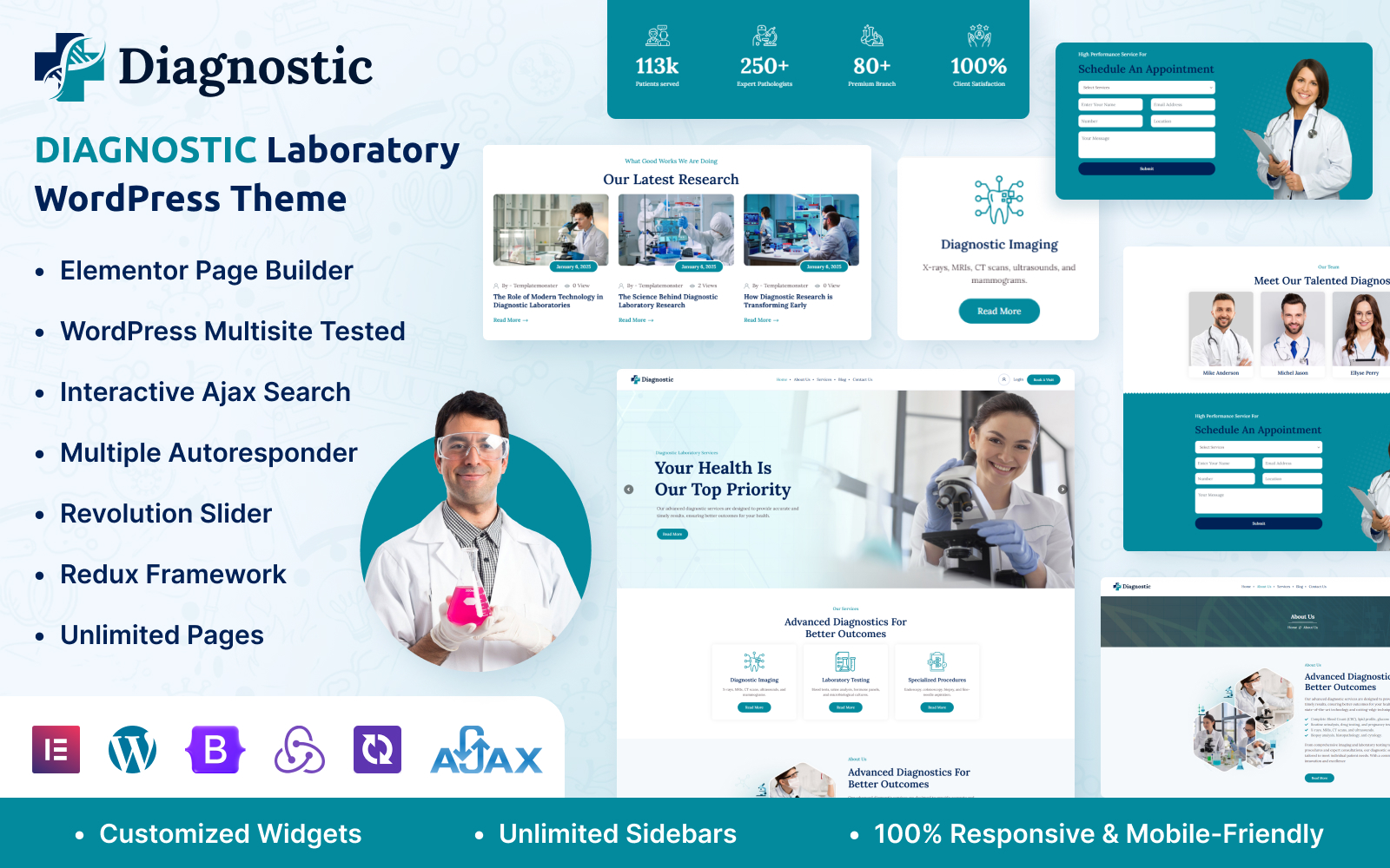 The Diagnostic Laboratory is a clean, modern design, lightweight, structured and easy to customize theme. Diagnostic Theme is built using the popular page builder i.e. Elementor Page Builder. The theme comes up with the pre built demo layout, that you can modify as per your business requirement.