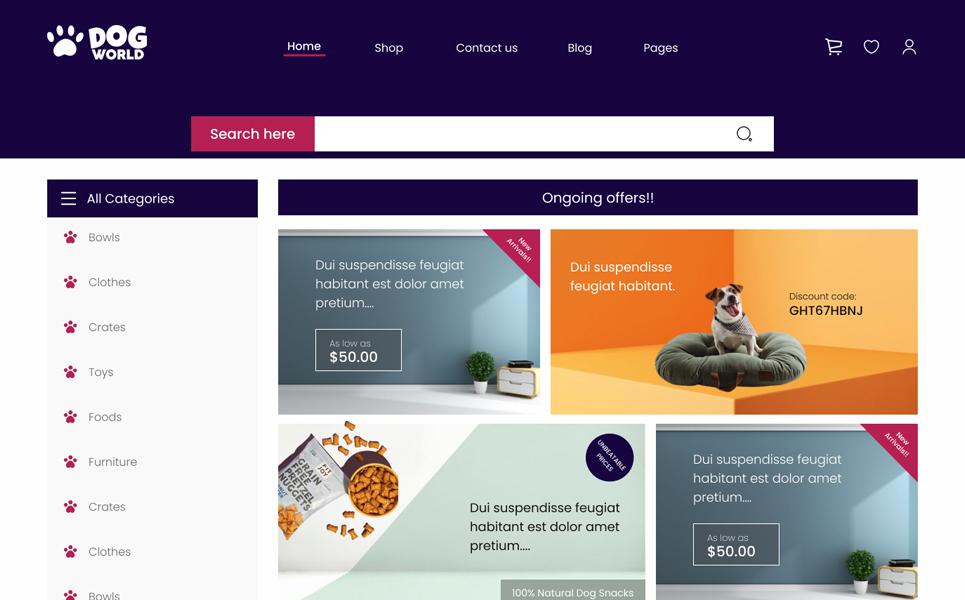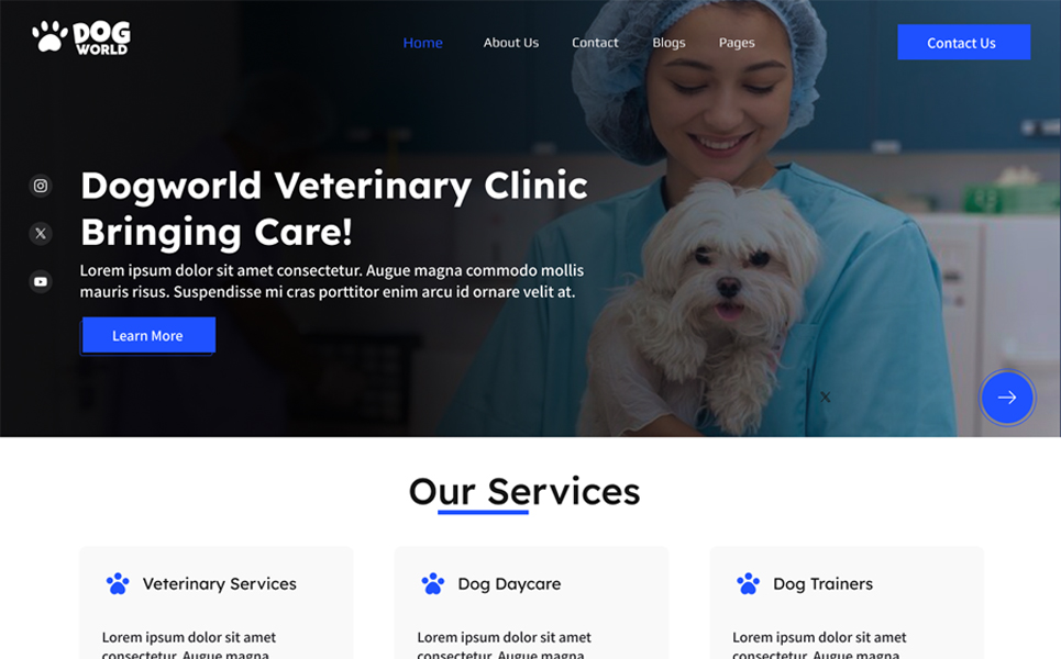● Veterinary Care: The dogworld theme has a template for veterinary clinics