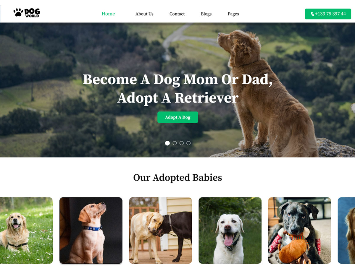 ● Dog Adoption: The dog world theme has a template for dog adoption suitable for your use.