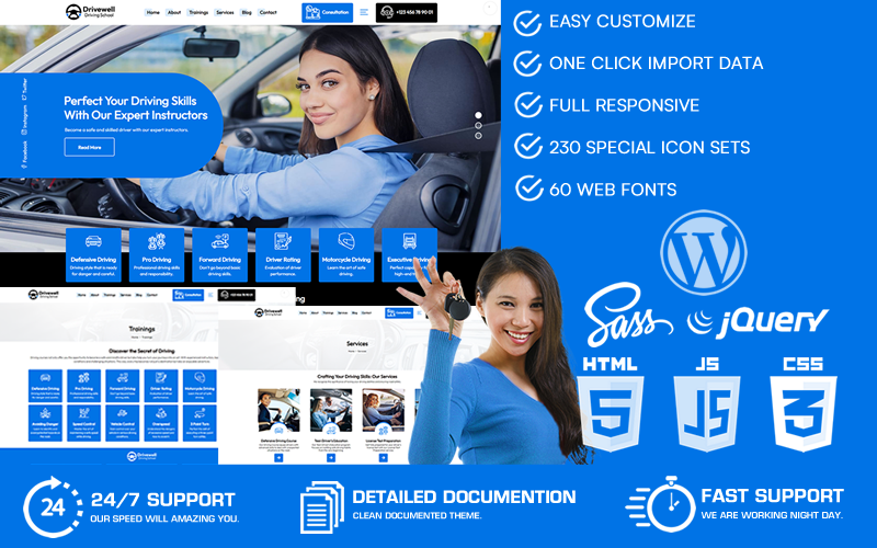 Drivewell transcends the conventional boundaries of a mere WordPress theme; it serves as the key to establishing a dynamic and compelling online presence for your driving school, training center, private chauffeur services, and all facets associated with traffic education. With its sophisticated design and extensive features, Drivewell is meticulously crafted to cater to the distinctive requirements of the driving education industry.