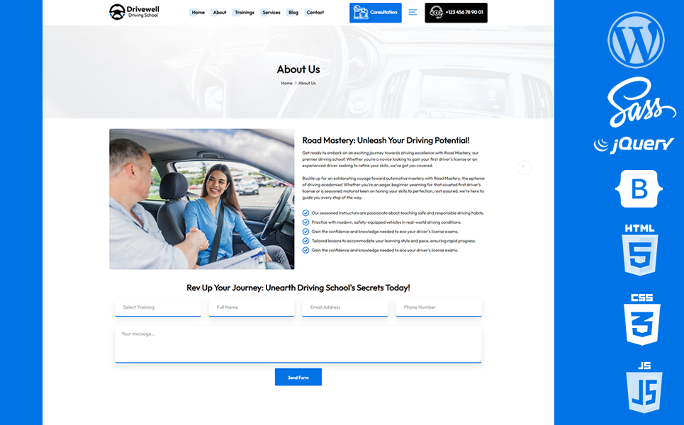 Drivewell doesn't just provide information; it encourages interaction. The theme incorporates advanced information and contact forms, simplifying the process for prospective students to reach out to you.