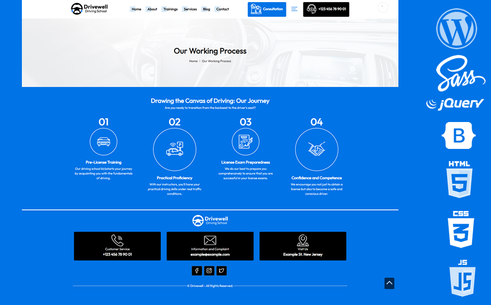 In summary, Drivewell is not merely a WordPress theme; it represents a comprehensive solution tailored to elevate your driving school's online presence. With its contemporary design, seamless navigation, and engaging features, Drivewell ensures that your institution stands out in the competitive realm of driving education. Get ready to propel your driving school to new heights with Drivewell!
