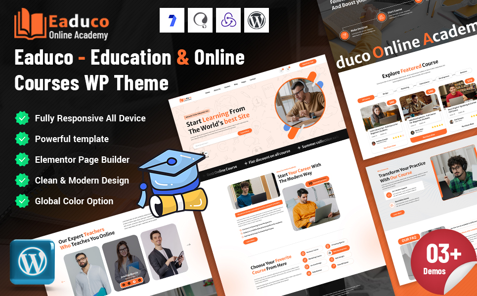 Eaduco is a versatile WordPress theme designed specifically for educational institutions, online courses, and e-learning platforms. It offers a range of customizable features, including course management, event scheduling, instructor profiles, and integrated payment options, making it ideal for creating a professional and user-friendly educational website. With its responsive design, multiple demo layouts, and compatibility with popular plugins like LearnPress and Elementor, Eaduco enables educators and institutions to effectively showcase their offerings and facilitate seamless online learning experiences.