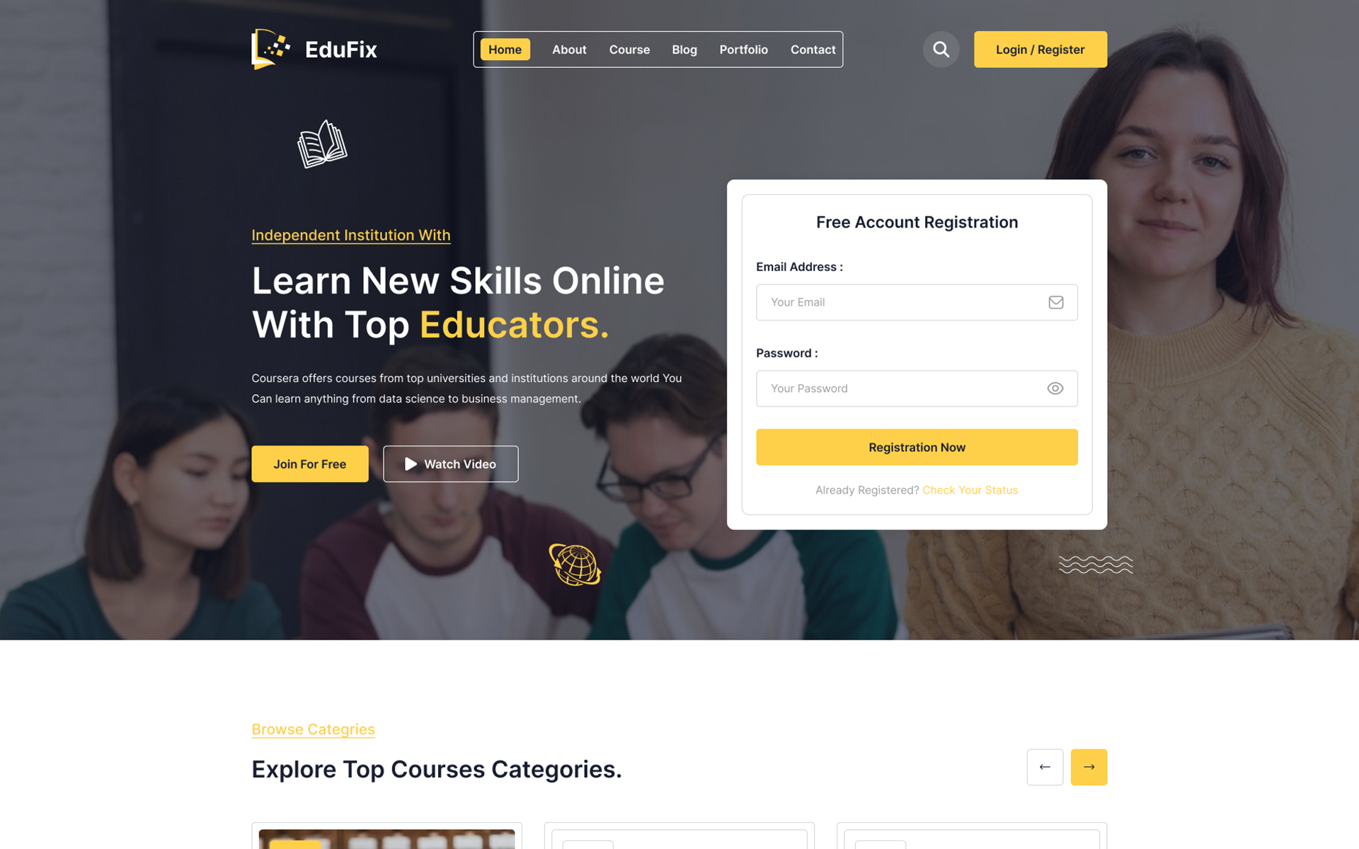Transform your online learning journey with Edufix, the ultimate WordPress LMS theme designed to elevate e-learning experiences. Built with the intuitive Elementor Page Builder, Edufix empowers you to create visually stunning and highly functional online education platforms effortlessly. Featuring seamless integration with Contact Form 7, connecting with your students has never been smoother. Explore unlimited color options and grab attention with a captivating home slider, making your website as engaging as your courses. Start your online education revolution with **Edufix** today!