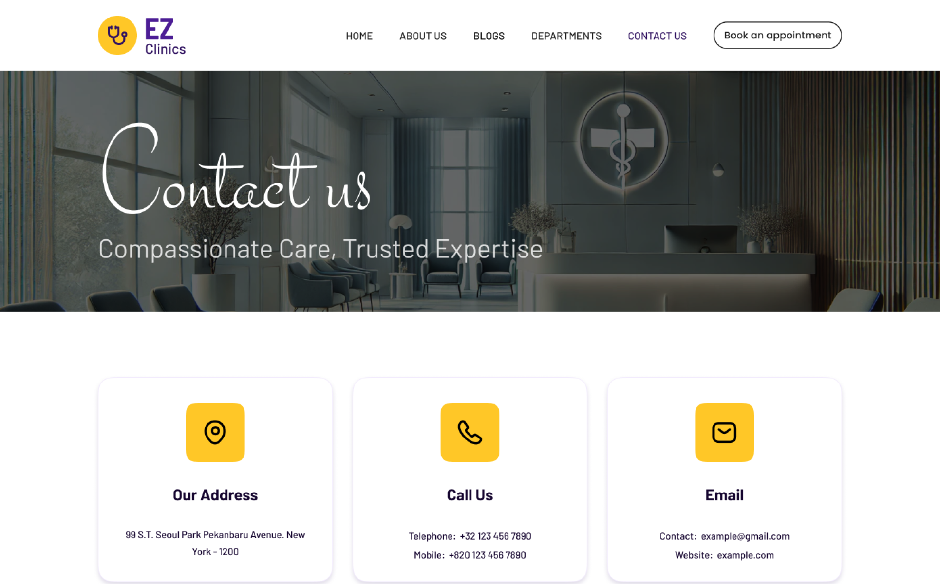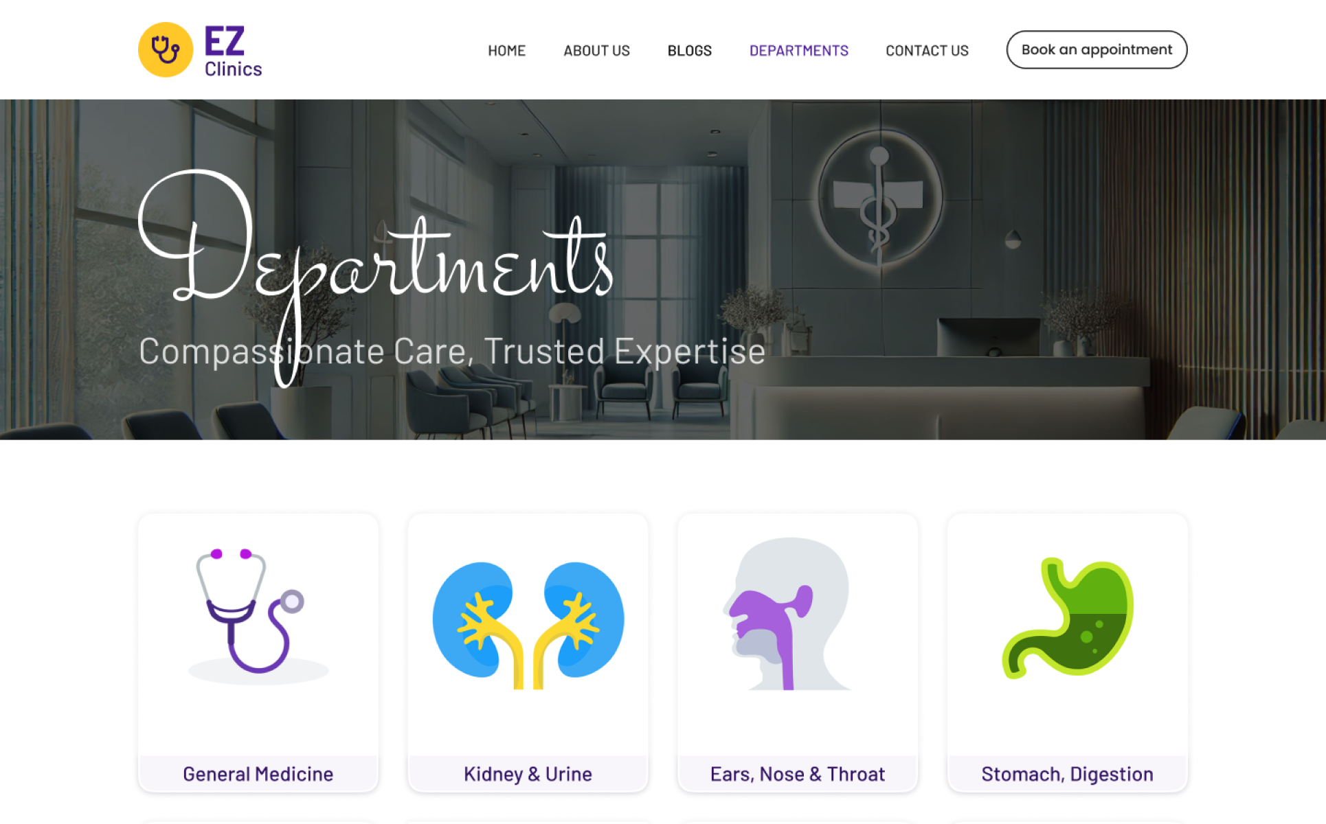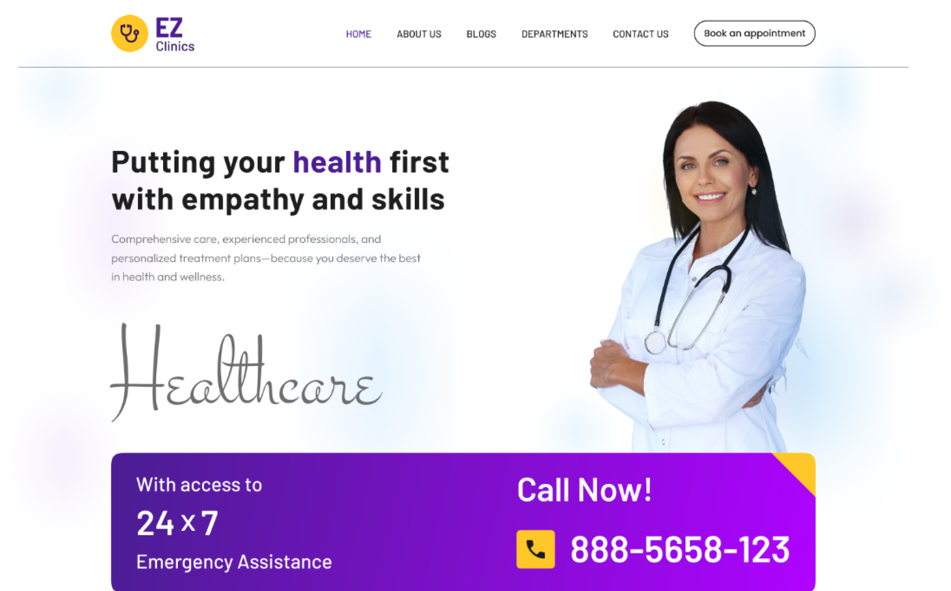 With EZ-Clinic, you can showcase your healthcare services, build trust with your patients, and establish a strong online presence. Make your clinic stand out and connect better with your community—effortlessly and professionally.
