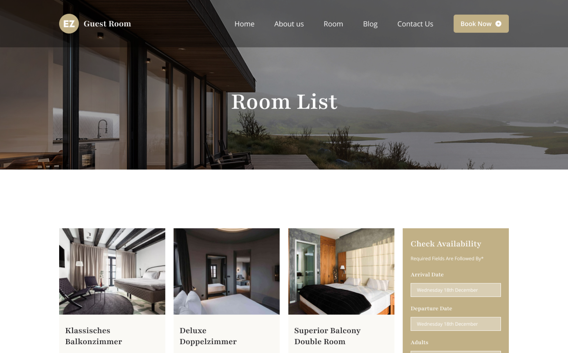 EZ Guest Room: Hotel Website Template WordPress Theme
