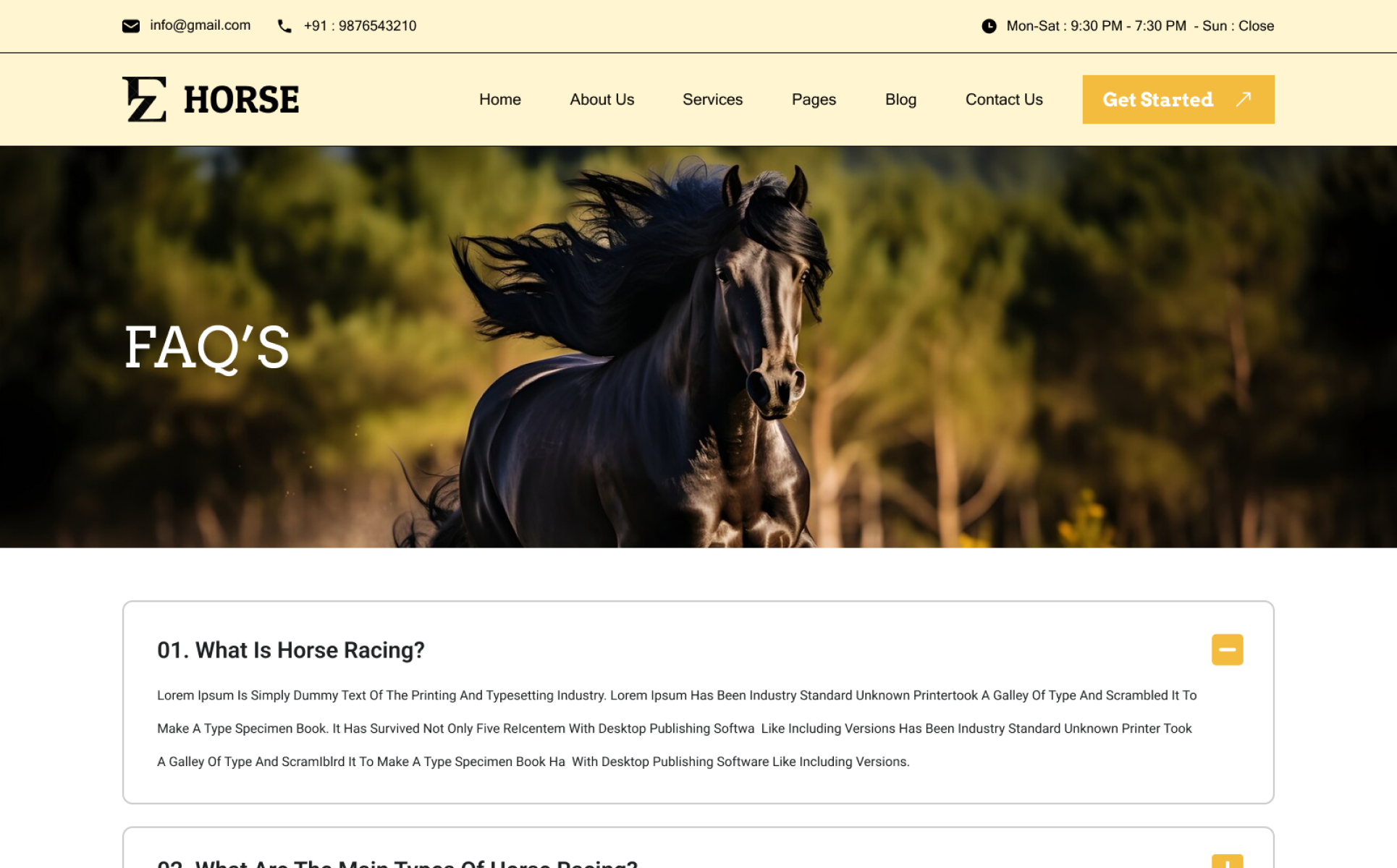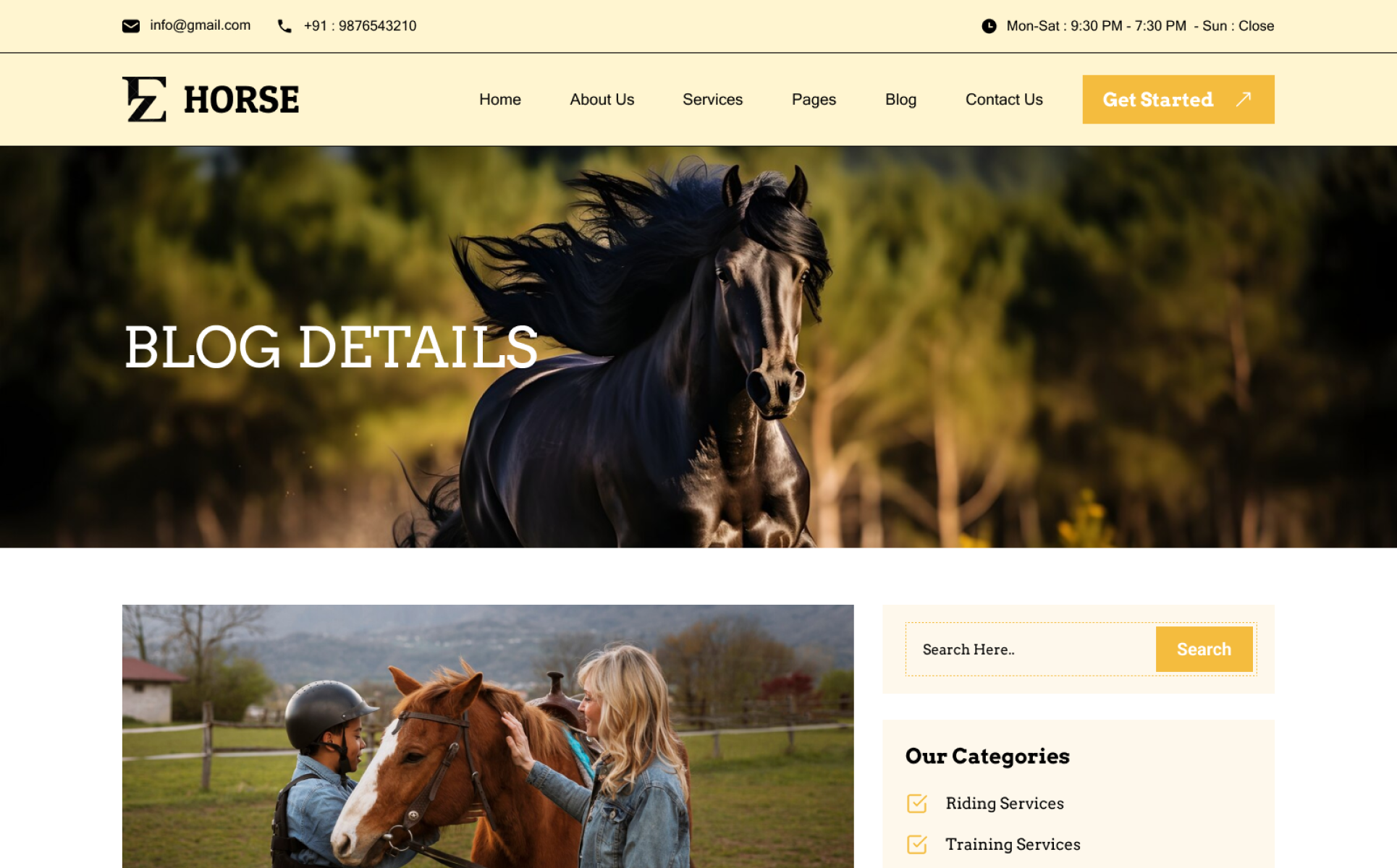 Introducing EZ Horse: The Ultimate WordPress Theme for Equestrian Businesses and Horse Enthusiasts. EZ Horse is a powerful and versatile theme designed specifically for horse-related ventures, including stables, riding schools, equestrian clubs, breeders, and tack shops. With a sleek design and advanced customization options, this theme equips you with all the tools necessary to build an engaging and professional online presence. Whether you manage horse training facilities, host equestrian events, or run an online horse gear store, EZ Horse lets you display your offerings in style and attract the right audience.