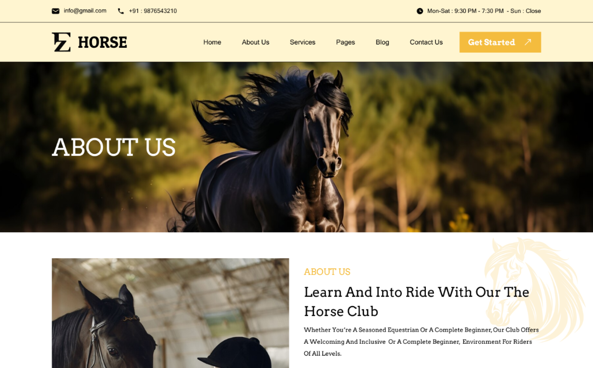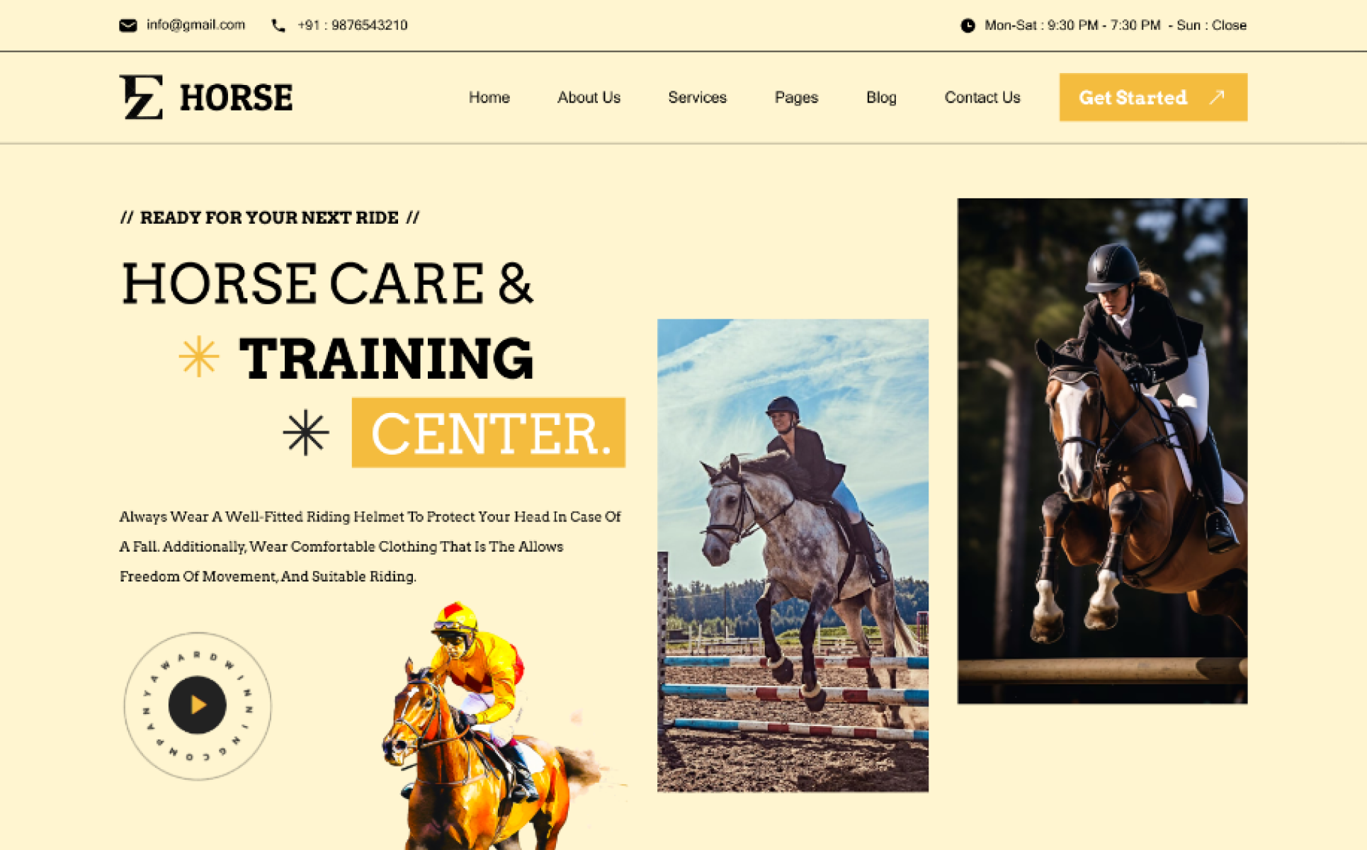 Key Features of EZ Horse: Showcase Horses and Events: Create visually appealing galleries to display horses, upcoming events, or training sessions, making it easy for visitors to explore and engage with your offerings.