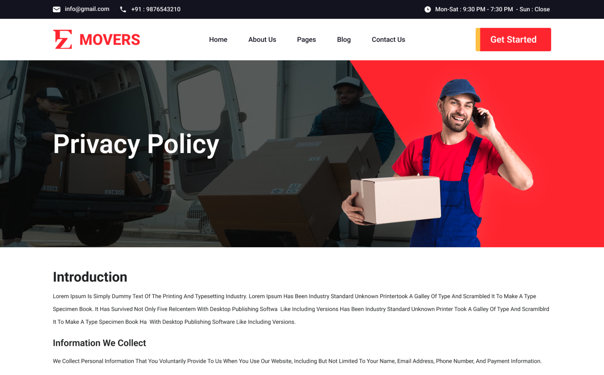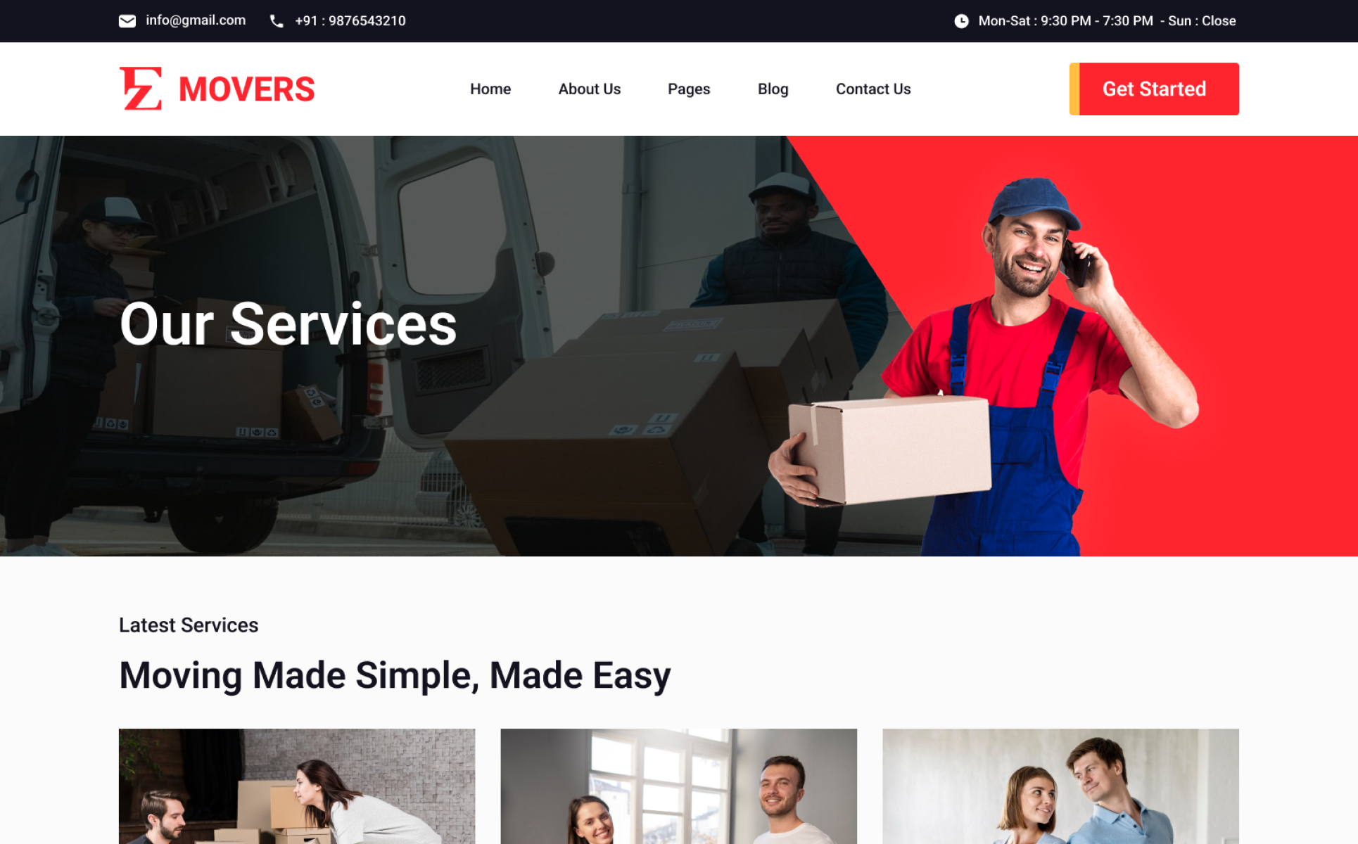 From local moves to international relocations, EZ Movers provides a range of pre-designed layouts to suit all types of moving services. Showcase your offerings, from packing and storage to transportation, with a style that aligns with your business.