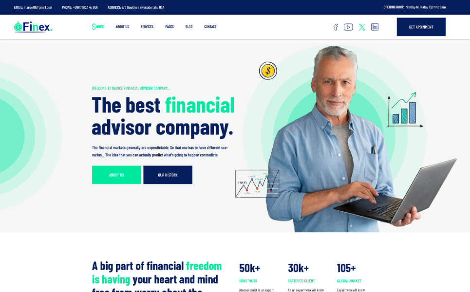 Professional Design: Finex boasts a clean, elegant design that exudes professionalism. Its well-structured layout and sophisticated color schemes make it an excellent choice for financial and business websites.