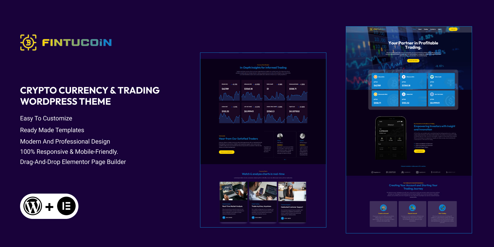 - Built with Elementor: Easy drag-and-drop customization with no coding skills required, ideal for creating Crypto Trading Platforms and NFT Marketplaces.