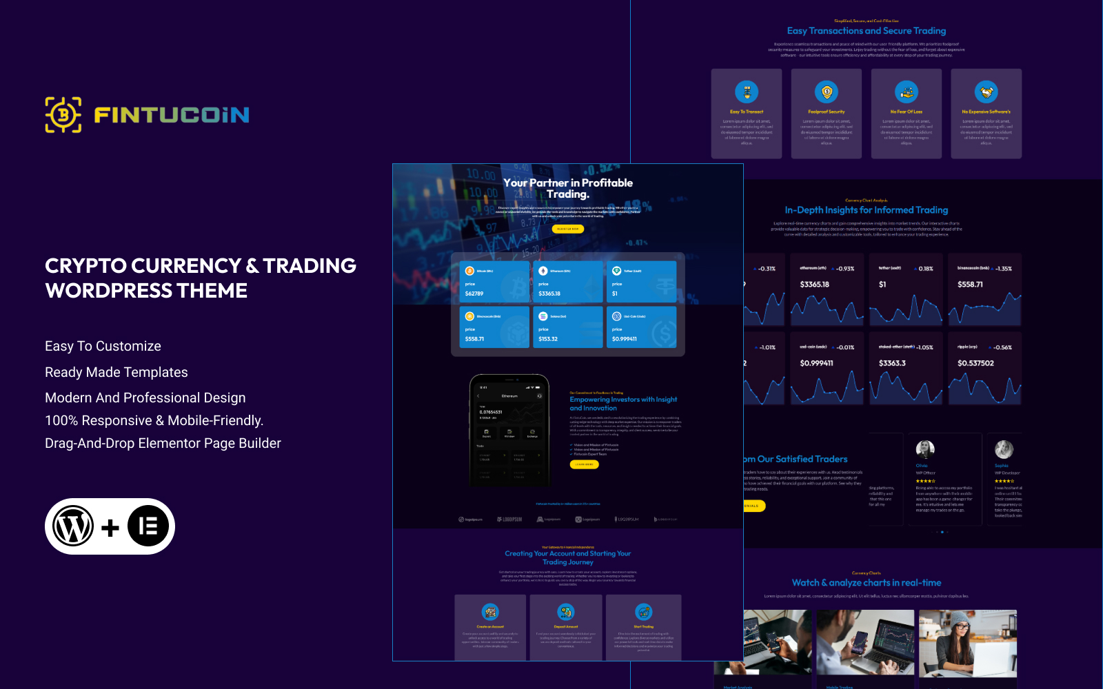 - Built with Elementor: Easy drag-and-drop customization with no coding skills required, ideal for creating Crypto Trading Platforms and NFT Marketplaces.