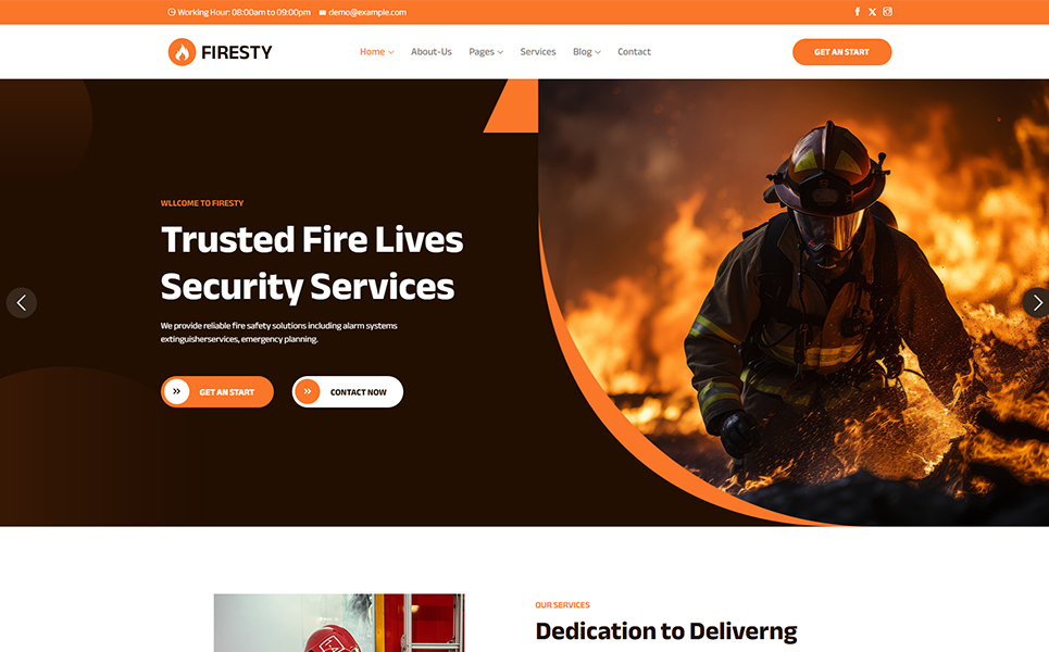 Firesty is a professional Elementor-based WordPress theme designed specifically for firefighting services, emergency response teams, and related safety organizations. It offers a range of customizable templates to showcase services, team members, emergency contacts, and safety tips, all with a clean and impactful design. The theme includes features such as appointment booking, contact forms, and responsive layouts to ensure accessibility across devices. Firesty enables fire departments and emergency services to create a compelling online presence that effectively communicates their mission, enhances community trust, and facilitates quick contact in urgent situations.