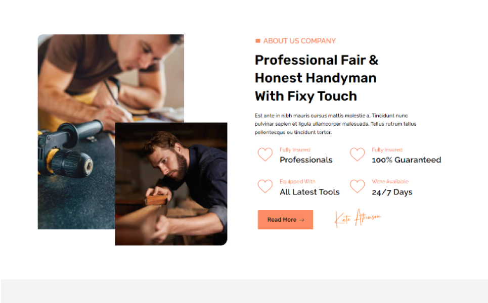 Additionally, Fixy comes with dedicated sections for customer testimonials and project portfolios, which are essential for building trust with new clients. You can easily display previous work, share success stories, and let satisfied customers vouch for the quality of your services. These features not only help convert website visitors into clients but also enhance your online reputation and credibility.