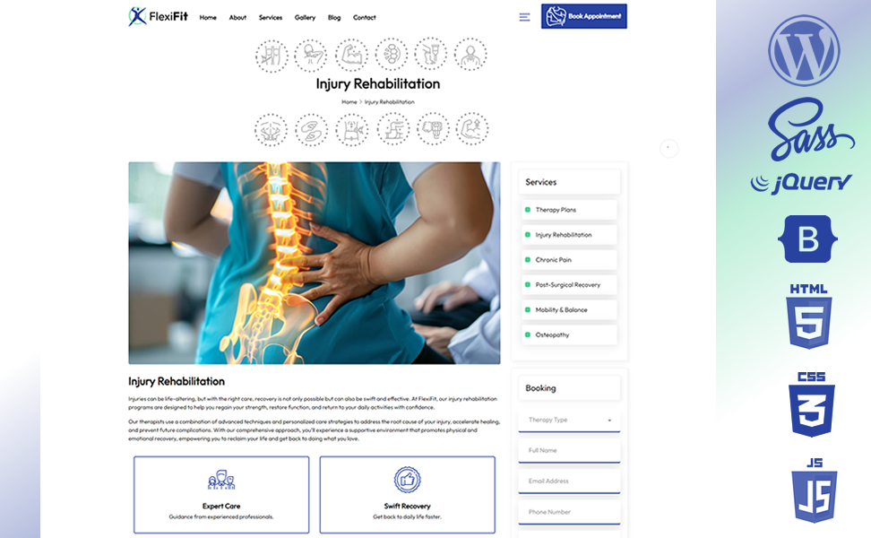 Theme Overview: FlexiFit is a premium WordPress theme designed to elevate the online presence of physiotherapy clinics, wellness centers, and health professionals. Built with precision and attention to detail, FlexiFit offers a seamless blend of modern design and robust functionality. Whether you’re a physiotherapist, chiropractor, or fitness coach, this theme provides everything you need to showcase your services, connect with clients, and promote a healthier lifestyle.