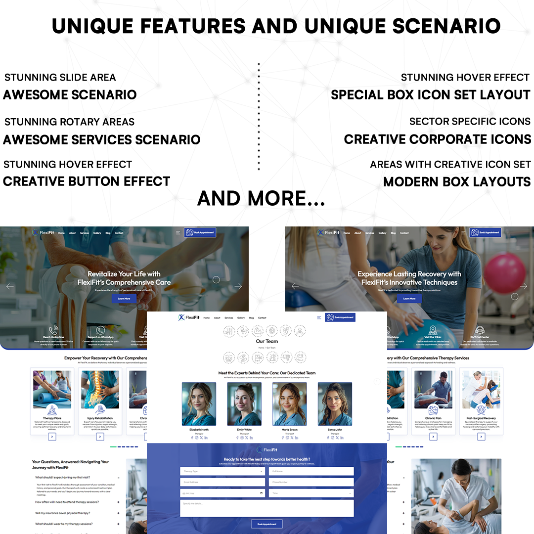 - Blog & News Section: Engage your audience with informative blog posts and news updates. The blog section is designed to keep your clients informed about the latest trends and tips in physiotherapy and wellness.