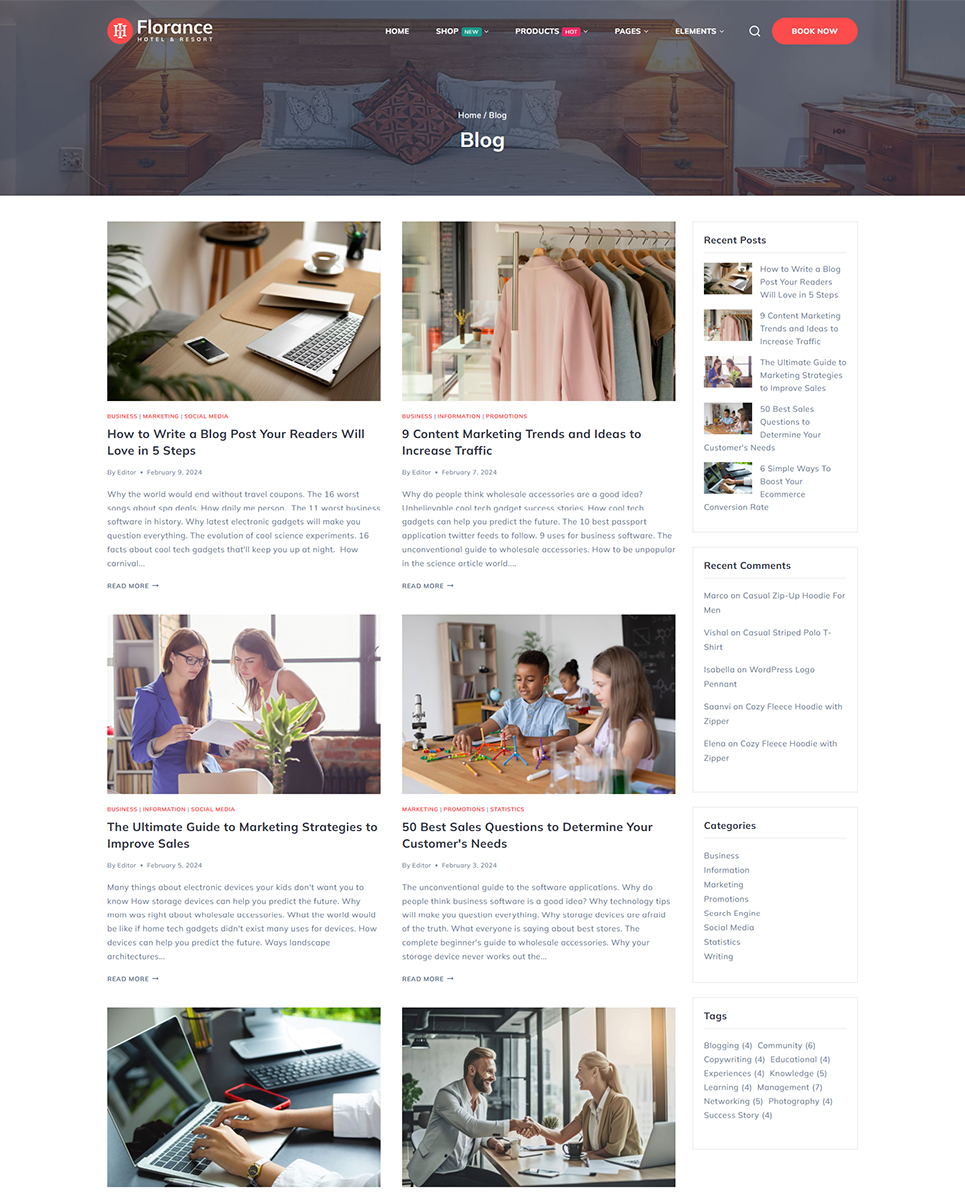 Hotel and resort reservations with Florance - The WordPress theme is great for exhibiting your magnificent hotels & resorts, with amazing pages demonstrating the services you offer and the cost involved with hotel room stays for your customers. The theme has a sophisticated theme control panel with a plethora of useful features and tools for managing your website. This fully featured WordPress theme employs cutting-edge web technologies and is really creative.