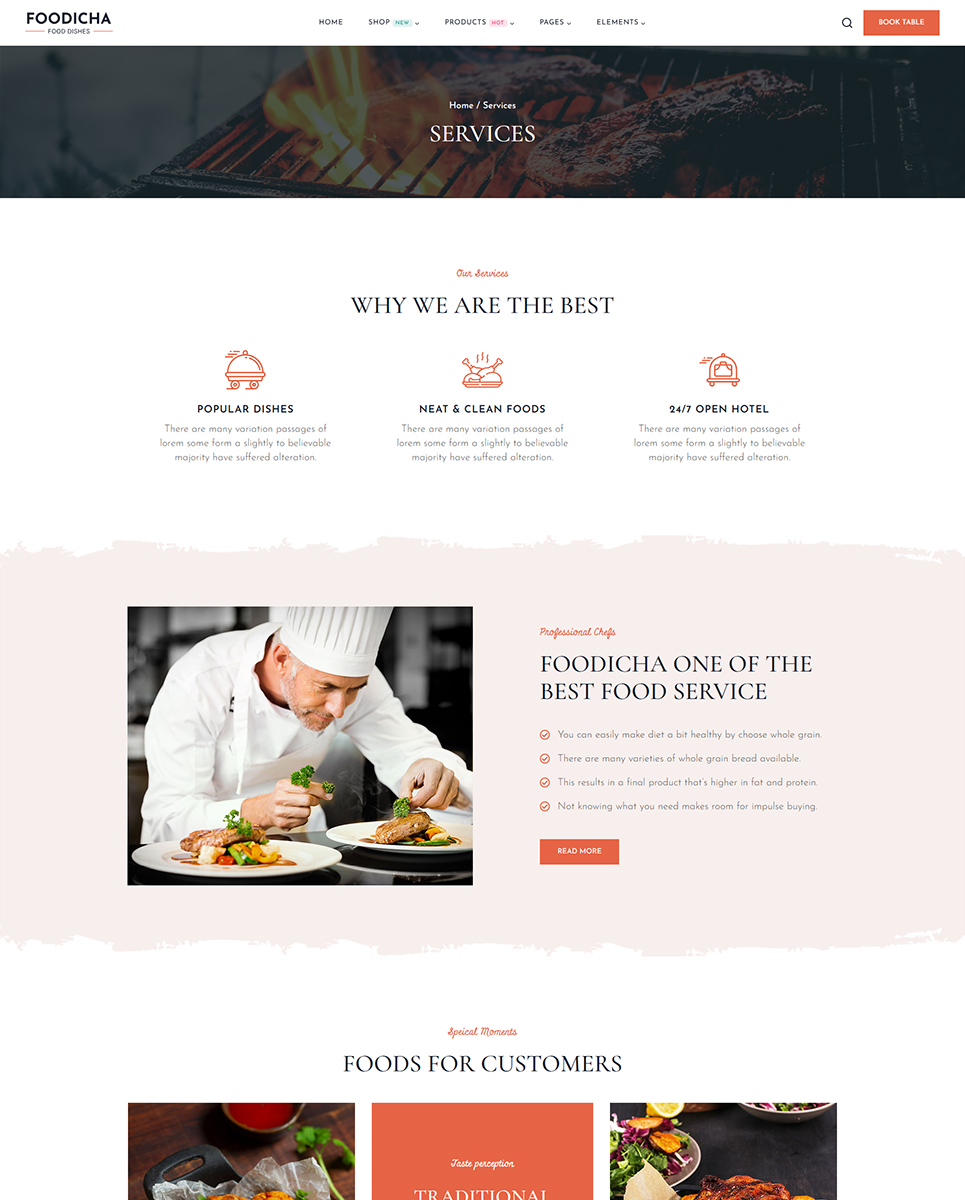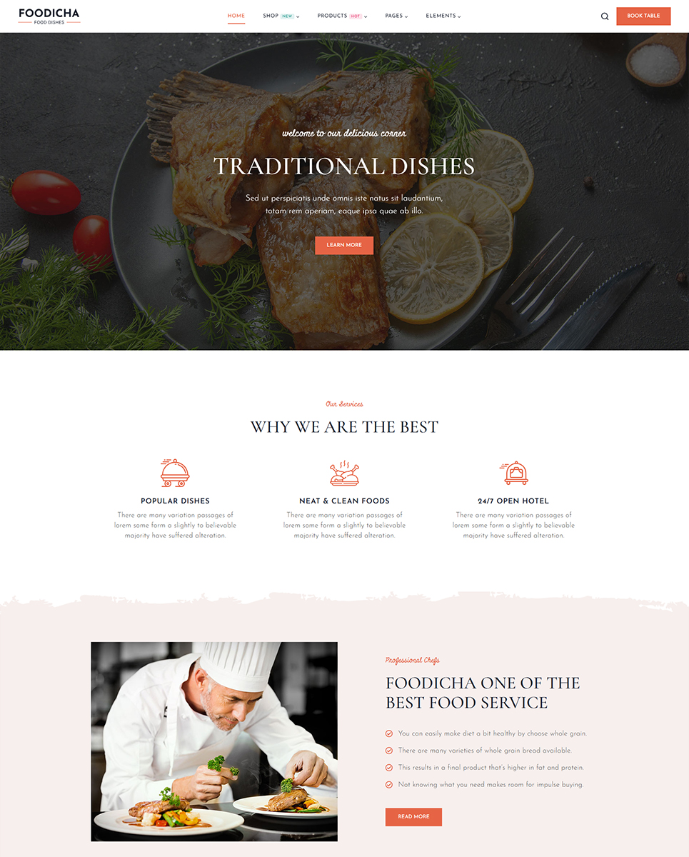 This theme is ideal for you if you're seeking for a convenient and user-friendly interface design for your restaurant business. Your needs will be met by the Foodicha Cafe & Restaurant Store wordpress theme. The major benefit of this theme is its contemporary design, clear structure, and ready-made section on the homepage, all of which are essential for a food business and will guarantee your company's expansion.