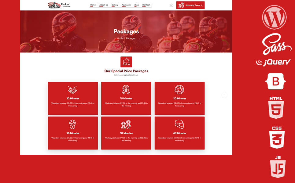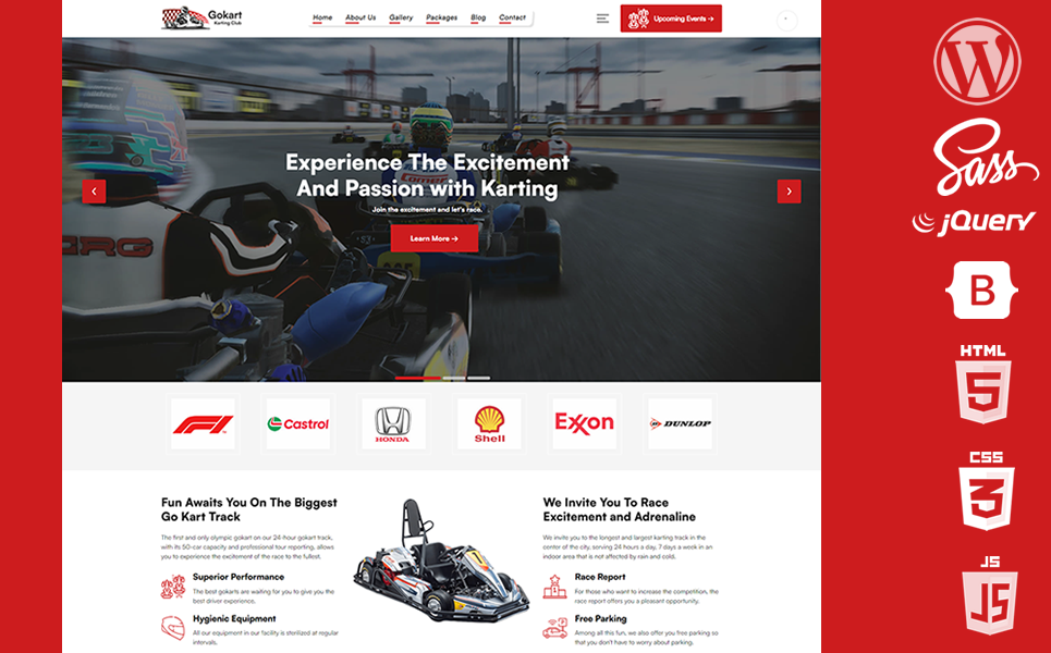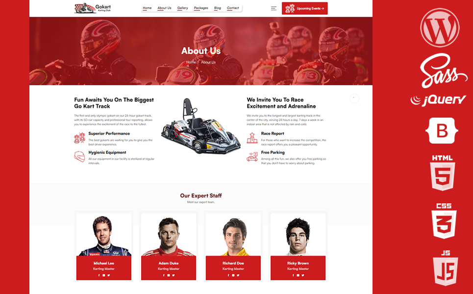 With the Gokart wordpress theme, you can show your karting club's events, track visuals and gokart features with a superior corporate design. You can assign organizers to your events and receive applications for all races. You can offer special price features for the times on your race track.