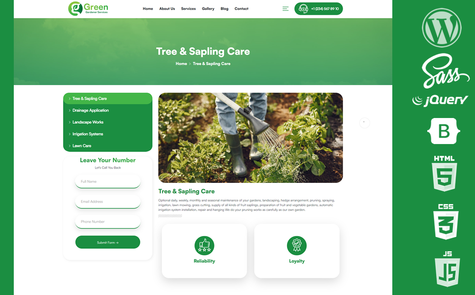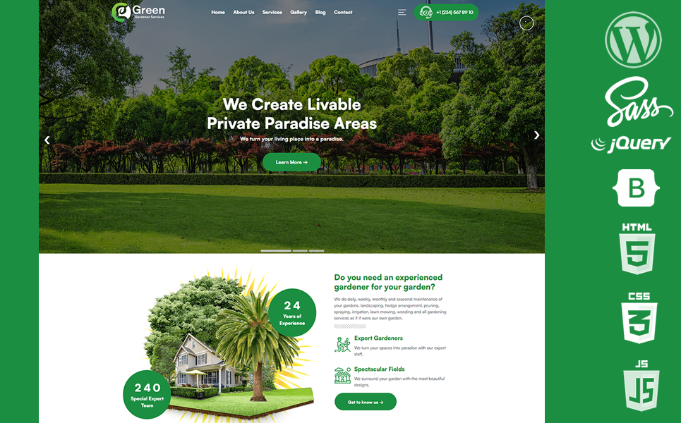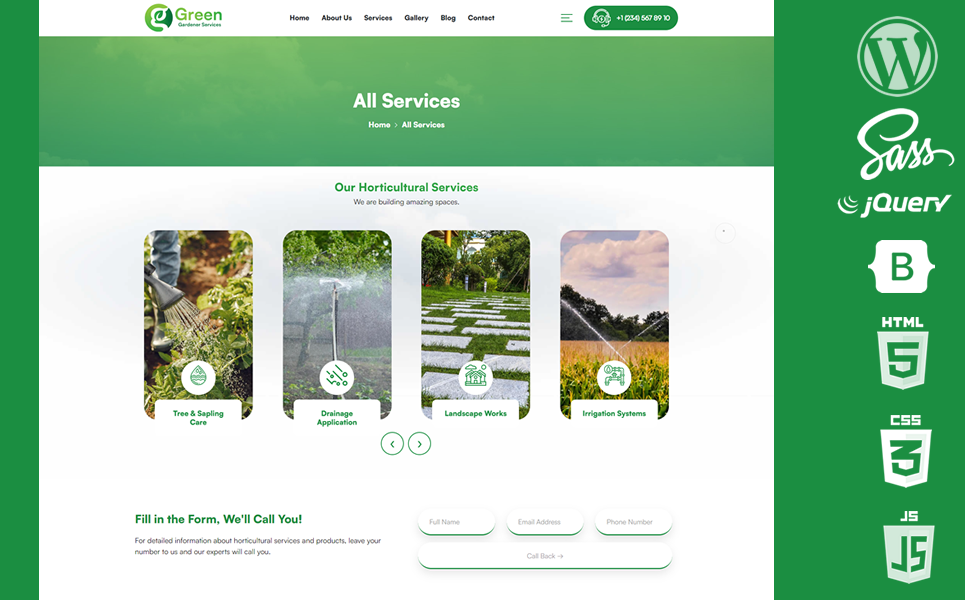 Green WordPress Theme is a premium professional wordpress theme created for Gardener, Gardener Services, Gardener Company and All Gardeners.
