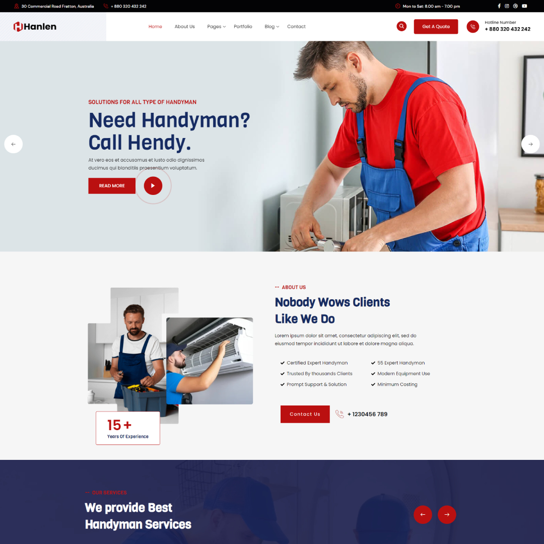 Hanlen - Handyman Servies & Repair Wordpress Theme WordPress Theme
