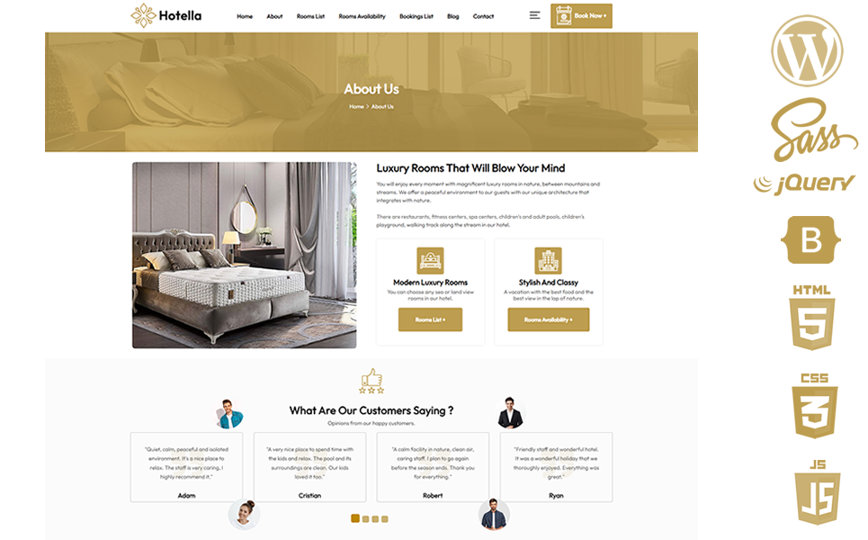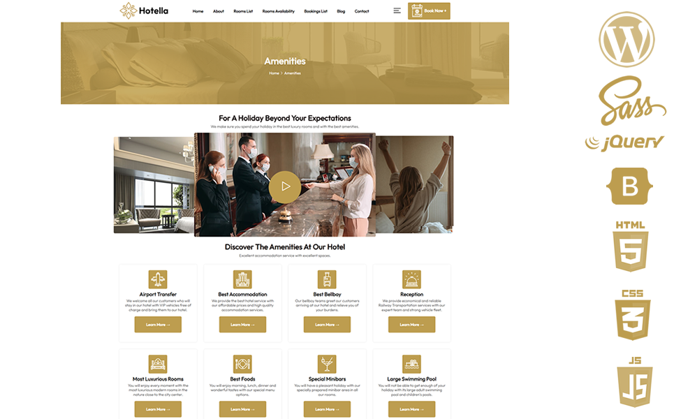 Hotella WordPress Theme is a professional theme designed for Hotel, Boutique Hotel, Tour, Hotel Services, Accommodation and All Hoteliers.