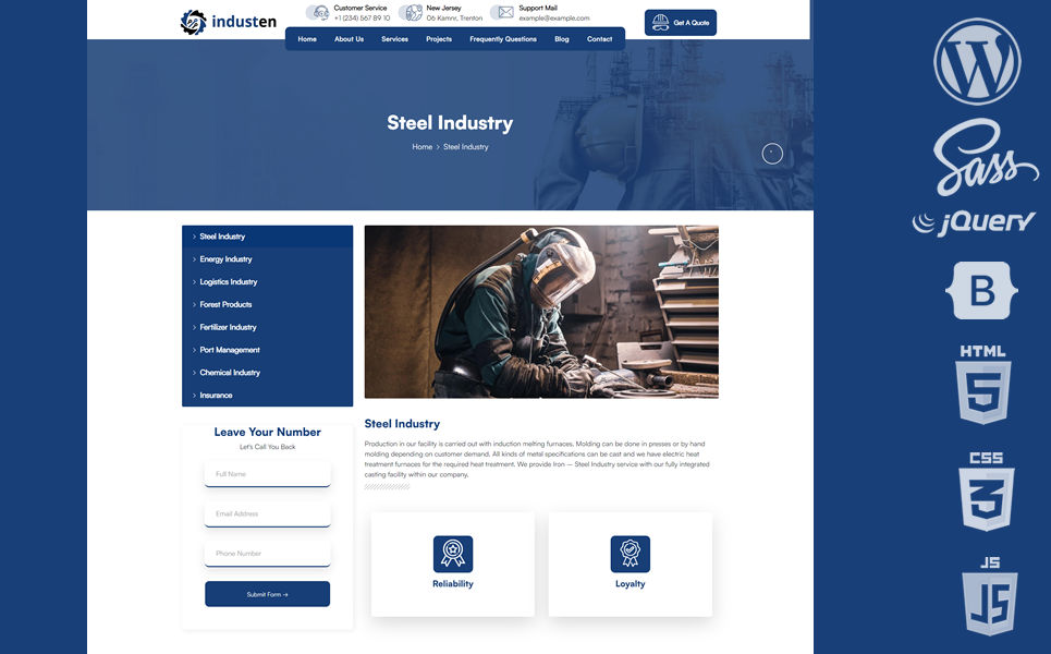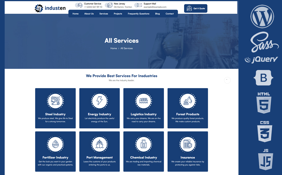Industen WordPress Theme is a stunning feature wordpress template developed for anyone in Industrial Services, Industrial Industry, Iron Steel, Gas Oil, Logistics, Fertilizer, Forest Products Holding Company and All Industry Industry.