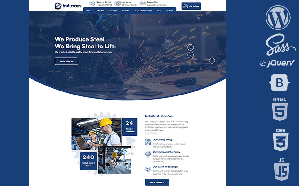 Industry If you are serving in the field of industry, this template will make you different from your competitors. With 260 special icon sets and 60 web fonts, you can easily customize your site according to you.