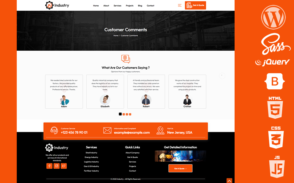 With the Industry wordpress theme, you can create your corporate identity in a few minutes and customize all your content from the tabs on the theme pages at super speed in a few minutes.