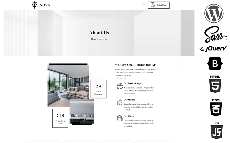 Inova - Interior & Furniture Manufacturing WordPress Theme
