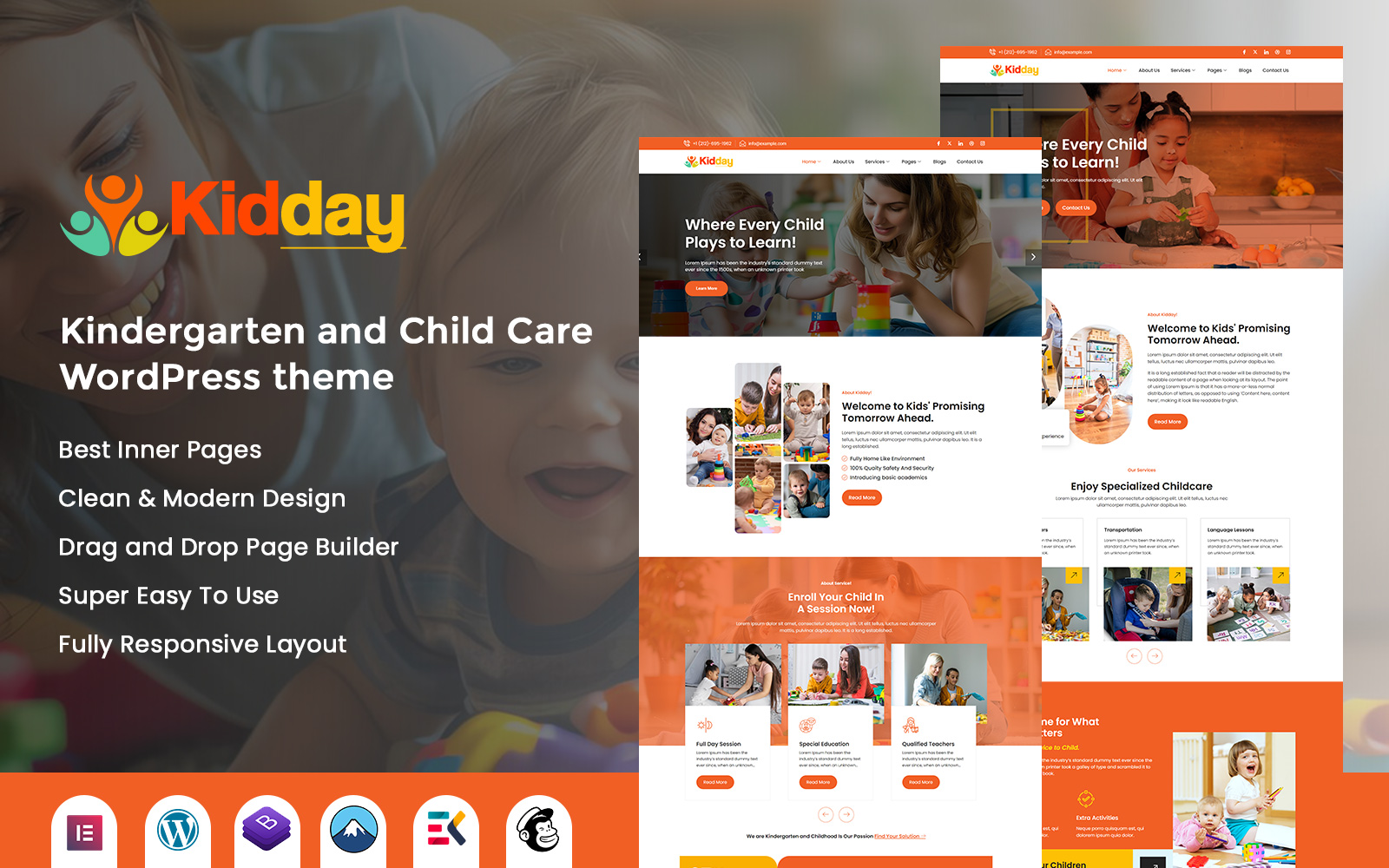 Welcome to Kidday, the perfect WordPress theme designed specifically for kindergartens, preschools, and child care centers. With a vibrant and playful design, Kidday creates an engaging online presence that captures the essence of early childhood education.